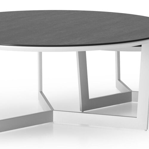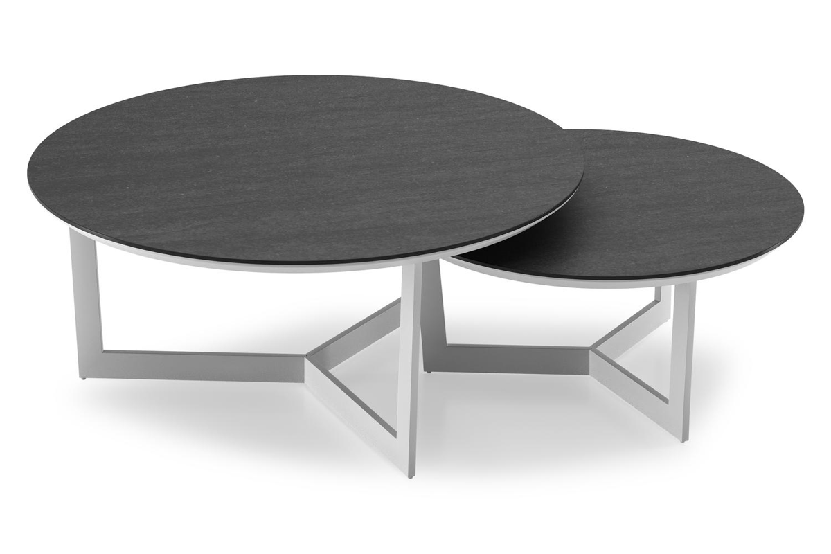 Lacrima set van 2 loungetafels rond in wit aluminium en volkeramiek Basalt Black - Dia. 85/65 x H 35/30 cm | Exterioo