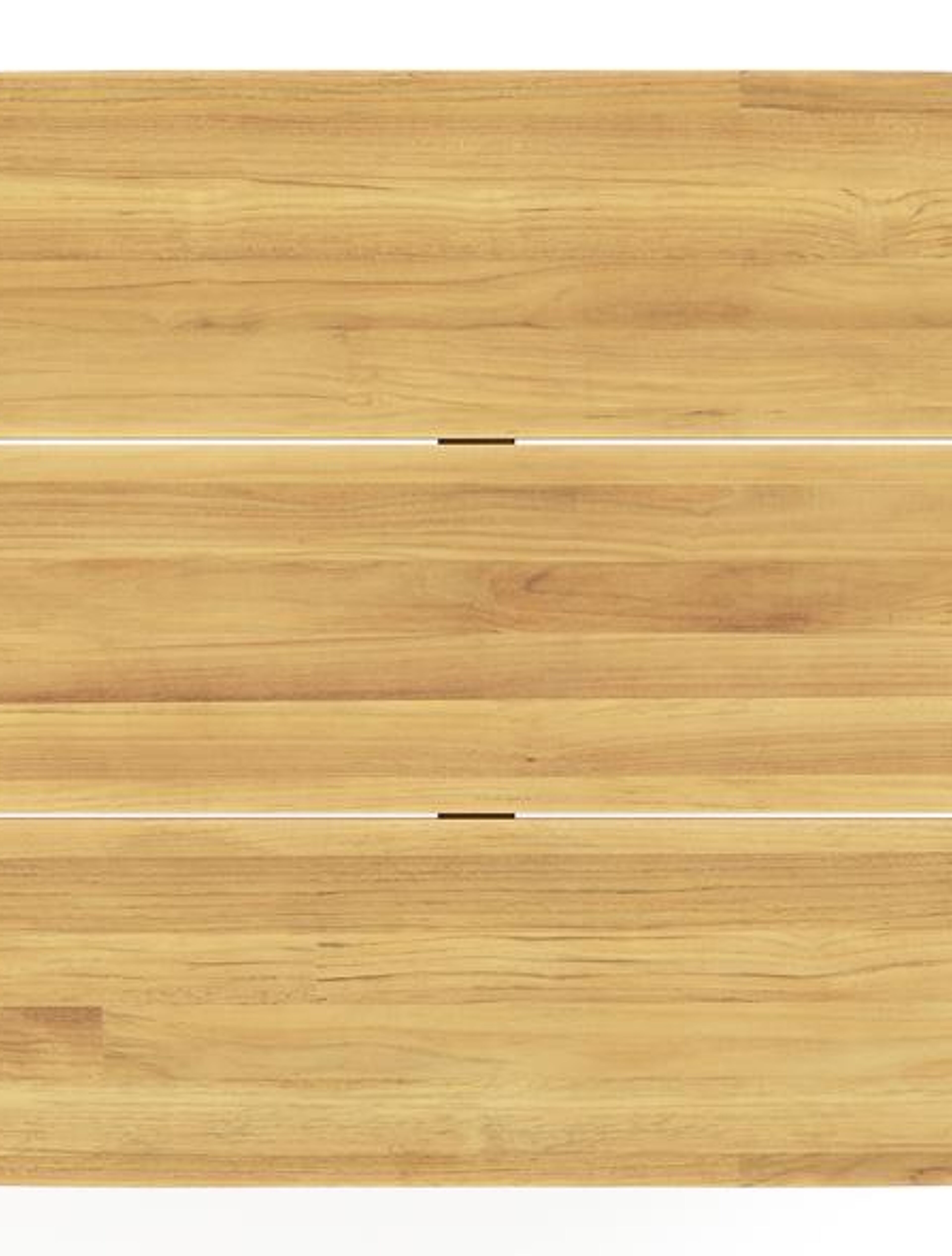 Een tafelblad uit teak staat gelijk aan bijzondere kwaliteit en natuurlijk design. Teak is een kwalitatieve houtsoort gekenmerkt door zijn hardheid. Aangezien hout leeft, kan de structuur of kleur licht anders zijn dan op het beeld weergegeven.