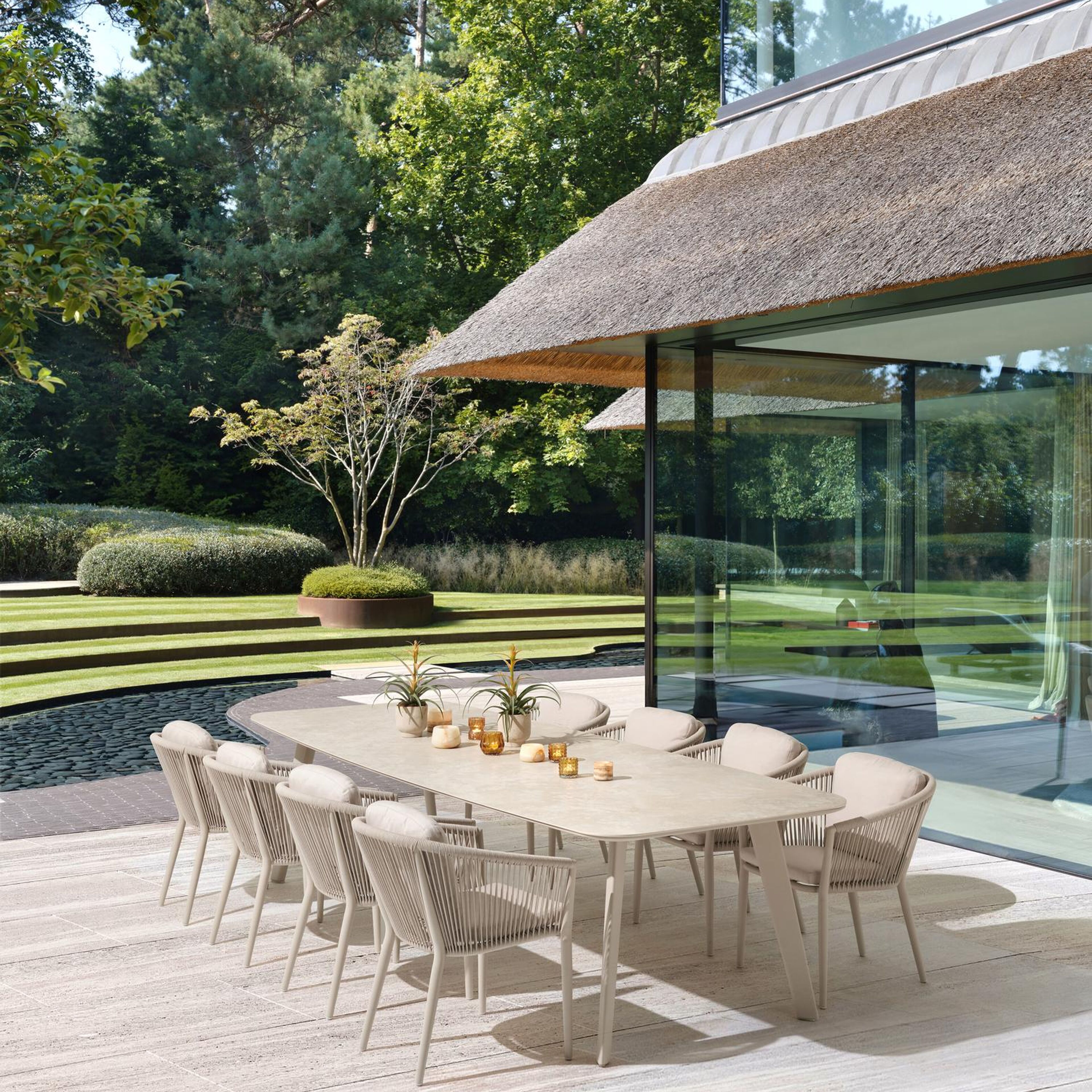 De Lacrima tuintafel heeft een hedendaagse look waarbij je de tafel makkelijk kan herkennen aan de afgeschuinde poten.