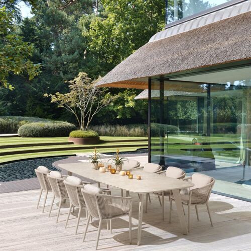 Lacirma tuintafel bootvorm in beige aluminium en volkeramiek Rapolano L 315 x B 115 cm | Exterioo