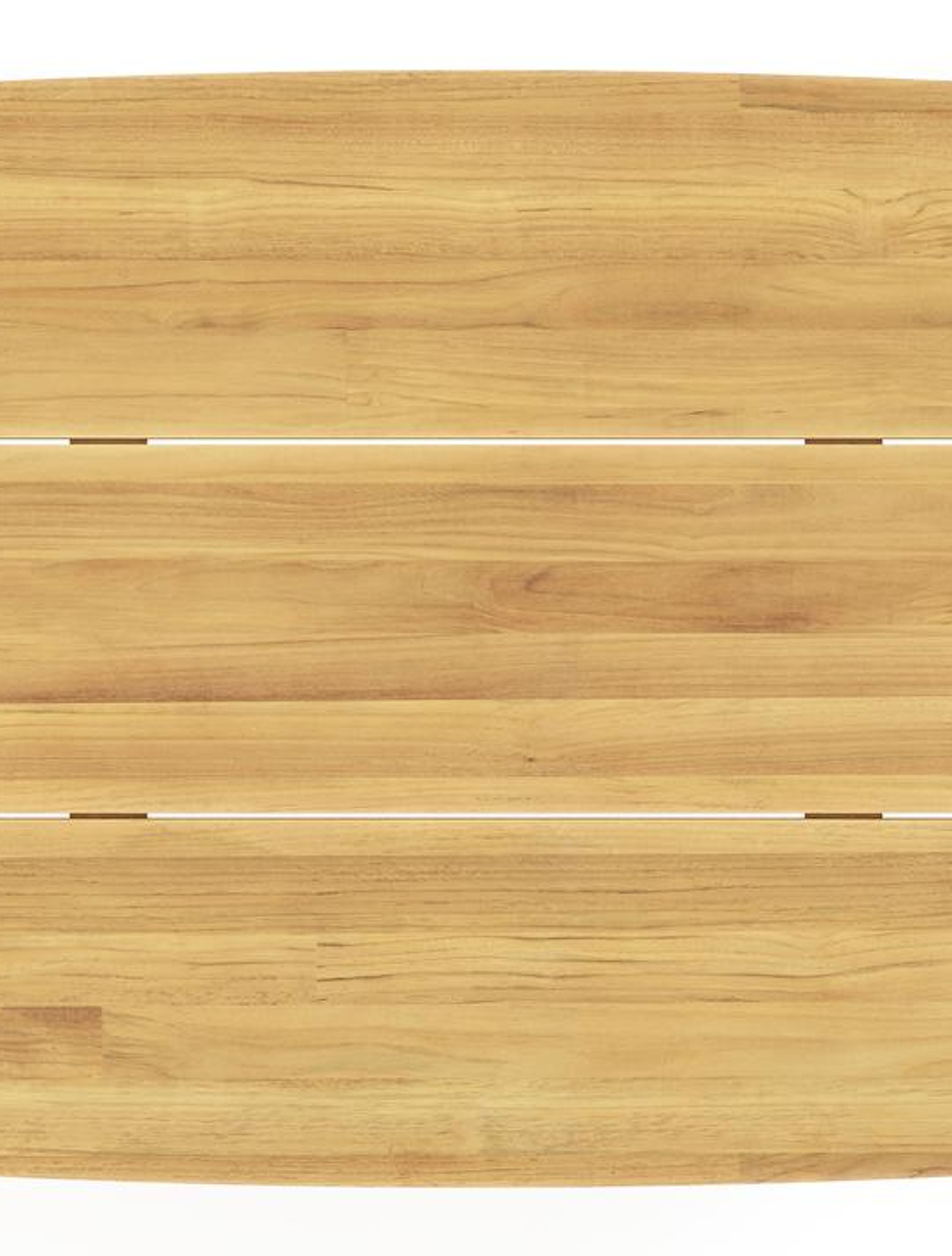 Een tafelblad uit teak staat gelijk aan bijzondere kwaliteit en natuurlijk design. Teak is een kwalitatieve houtsoort gekenmerkt door zijn hardheid. Aangezien hout leeft, kan de structuur of kleur licht anders zijn dan op het beeld weergegeven.