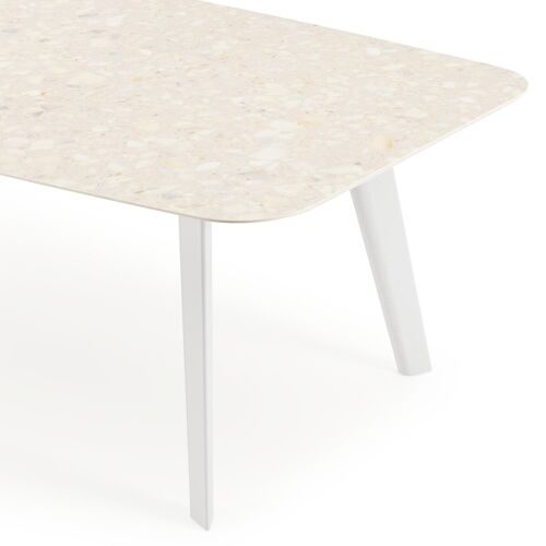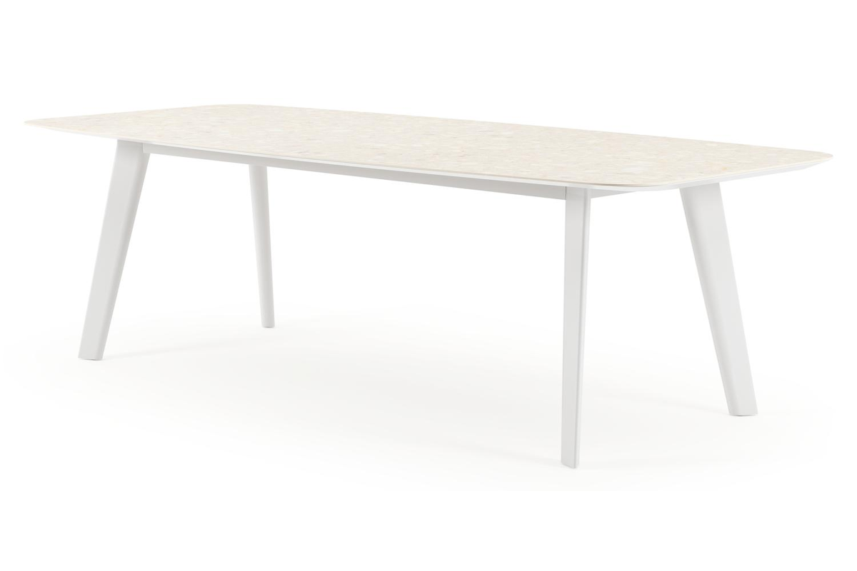 Lacrima tuintafel bootvorm in wit aluminium en volkeramiek retrostone - L 255 x B 115 x H 73 cm | Exterioo
