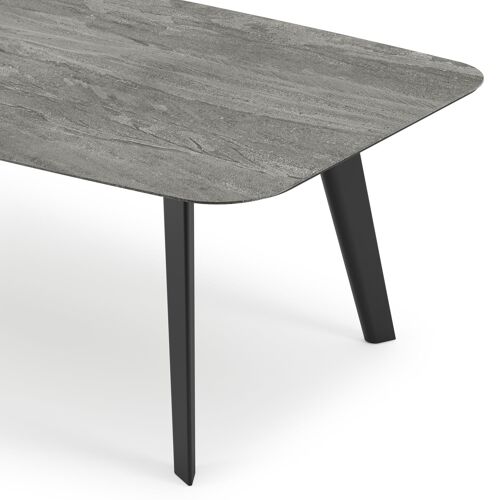 Lacrima tuintafel in zwart aluminium en volkeramiek aspen grey - L 255 x B 115 x H 74 cm | Exterioo