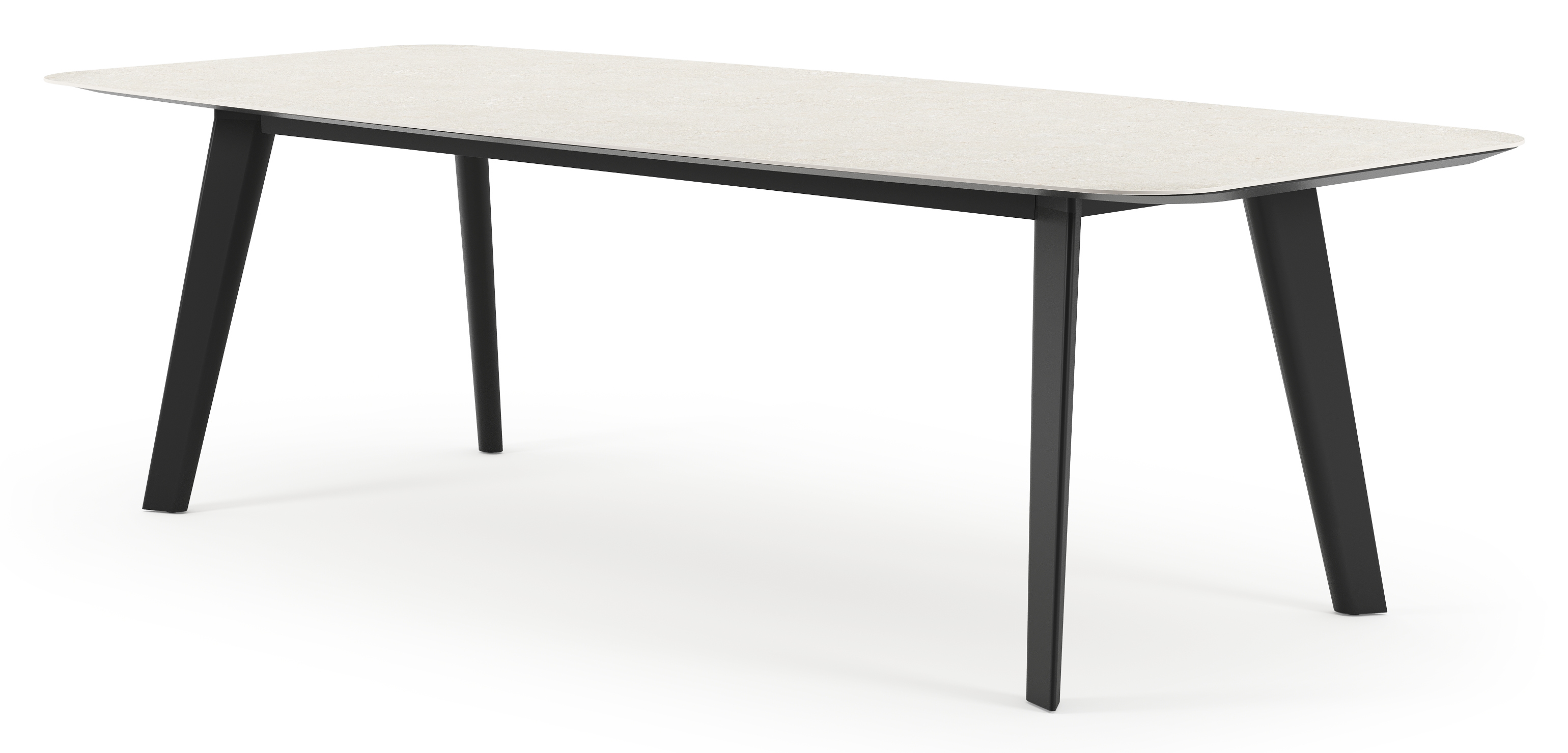 De Lacrima tuintafel heeft een hedendaagse look waarbij je de tafel makkelijk kan herkennen aan de afgeschuinde poten.