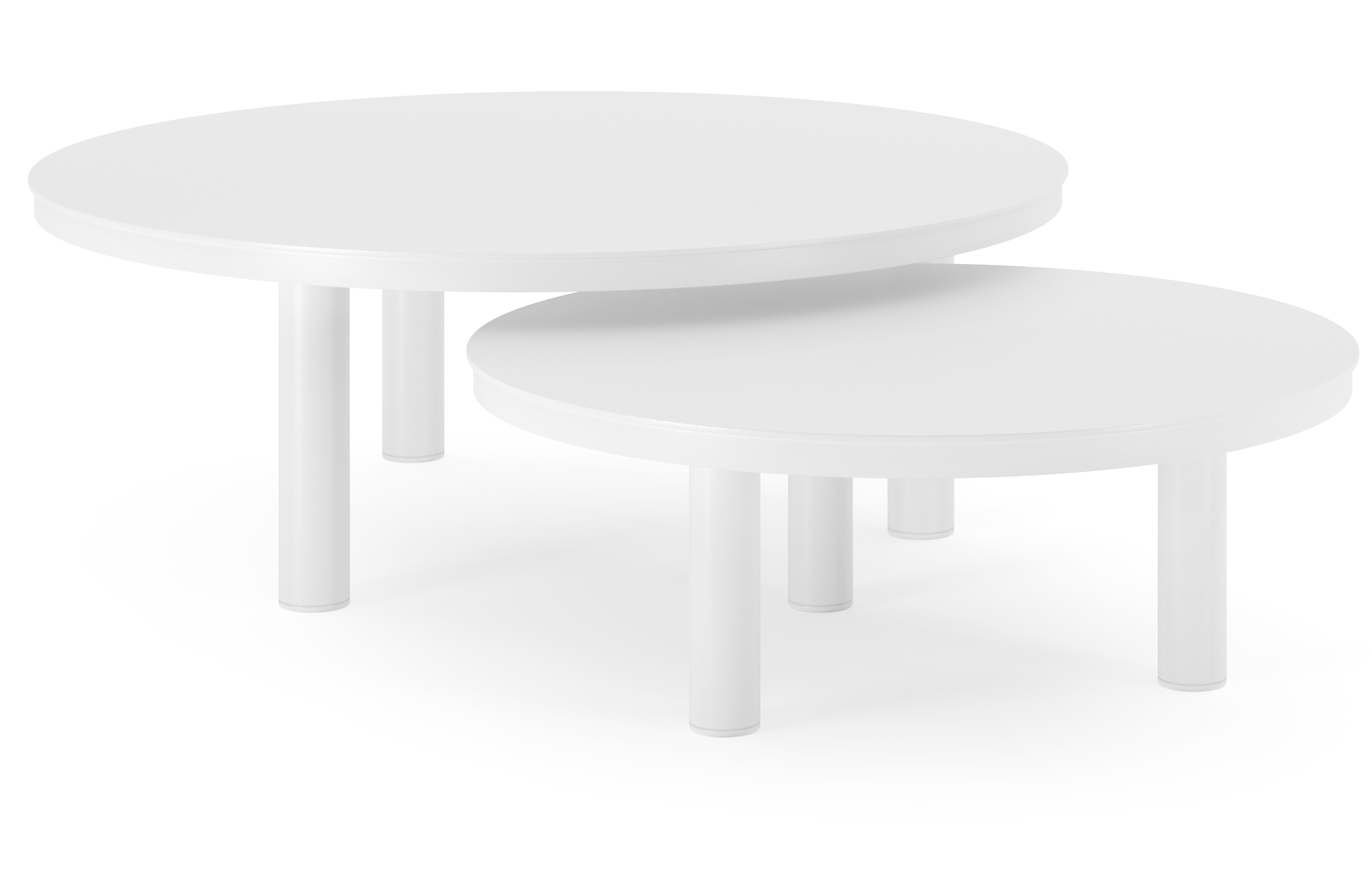 De Lindo loungetafels vormen met hun rond ontwerp en cilindervormige pootjes de perfecte balans tussen modern design en subtiele vormen.