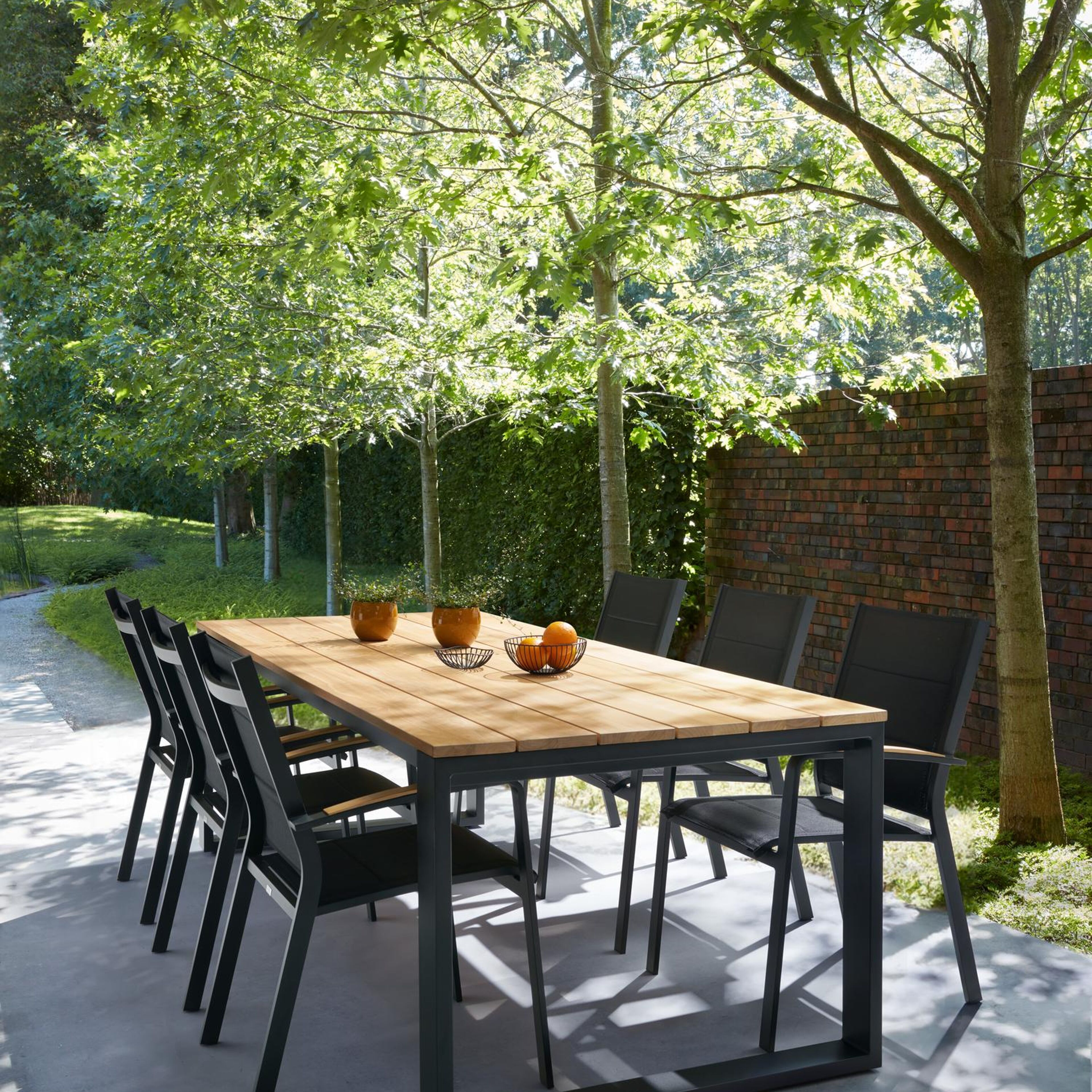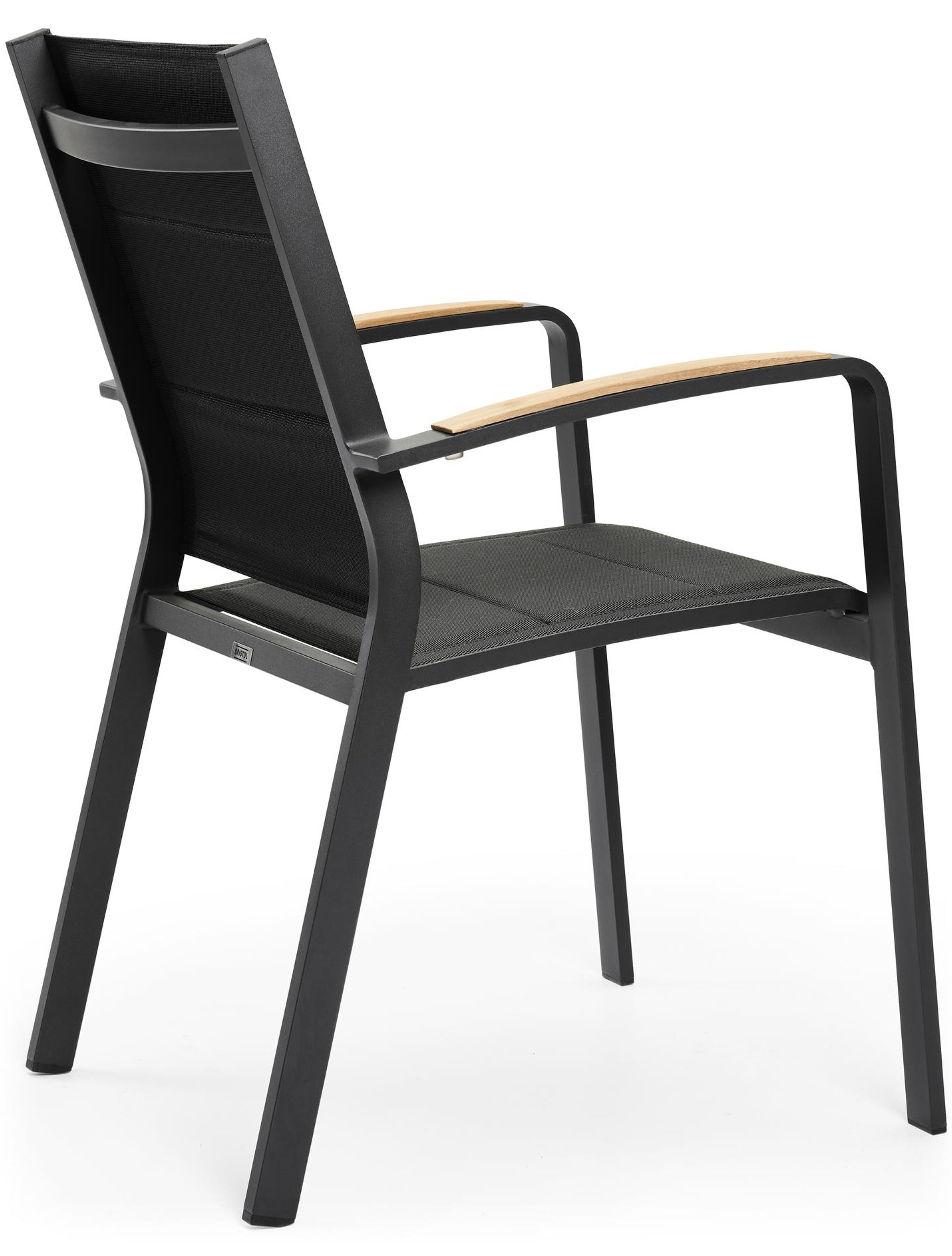De Lioni is een stapelbare stoel in ons Bristol A là Carte gamma. Hij is gemaakt van aluminium en is hierdoor roestvrij. De zitting en rugleuning zijn gemaakt van textilene, een geweven structuur die zorgt voor een comfortabele zitting. Er zijn twee lagen textilene met daartussen een vulling die zorgt voor extra zitcomfort. De armleuningen zijn afgewerkt met een houten latje.