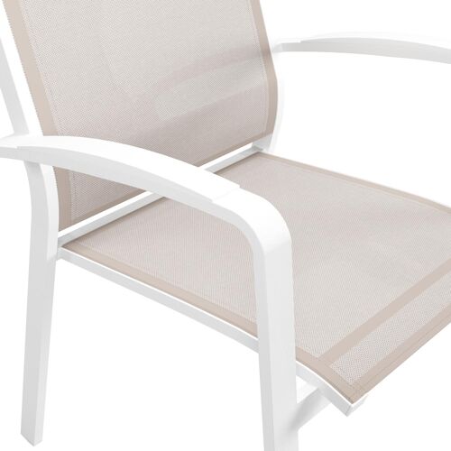 Lioni stapelbare tuinstoel in wit aluminium en beige single textilene | Exterioo