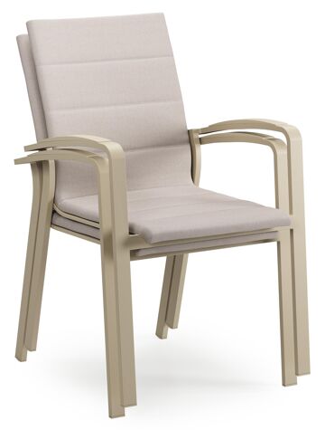Lioni stapelbare tuinstoel in beige aluminium en beige dubbele luxe textilene | Exterioo