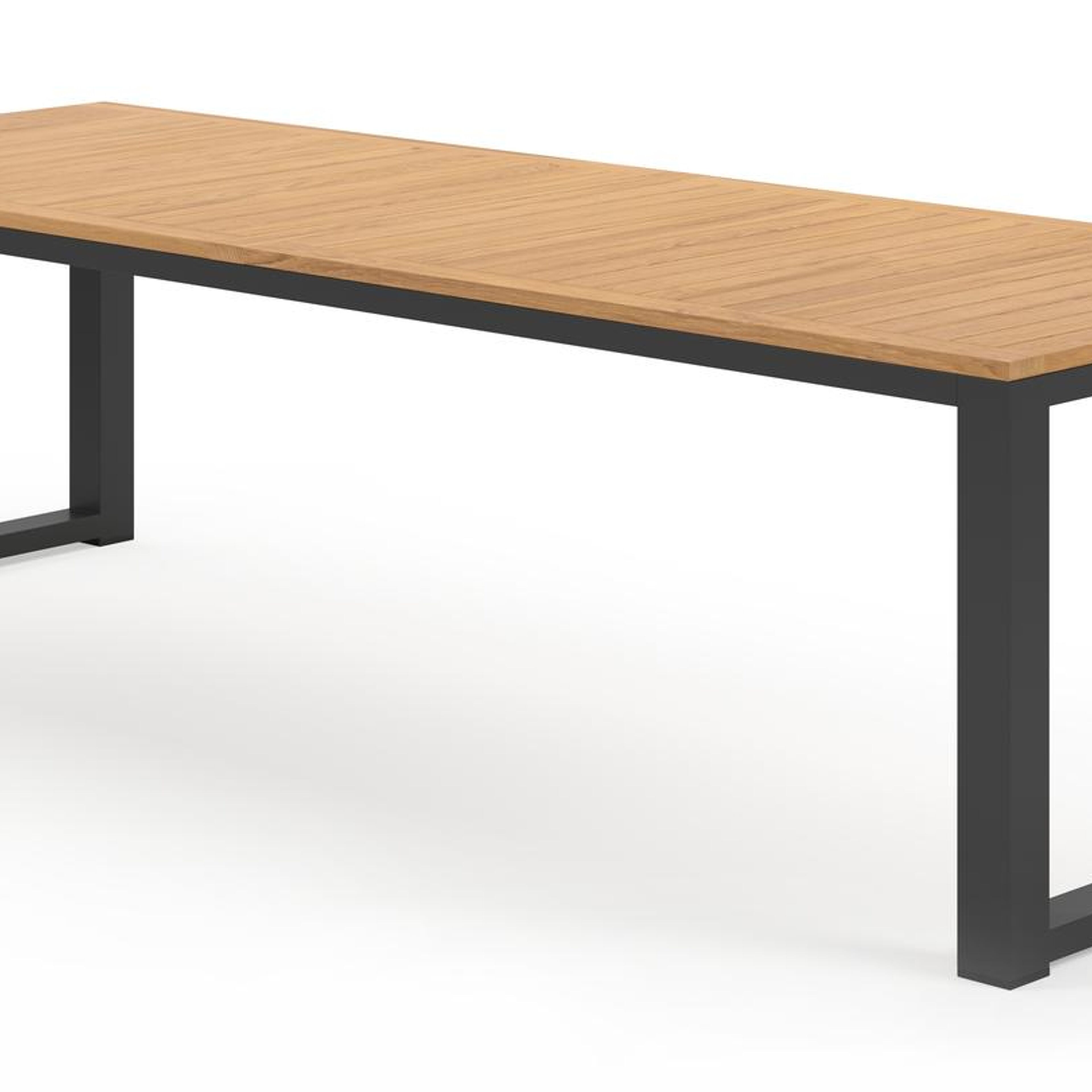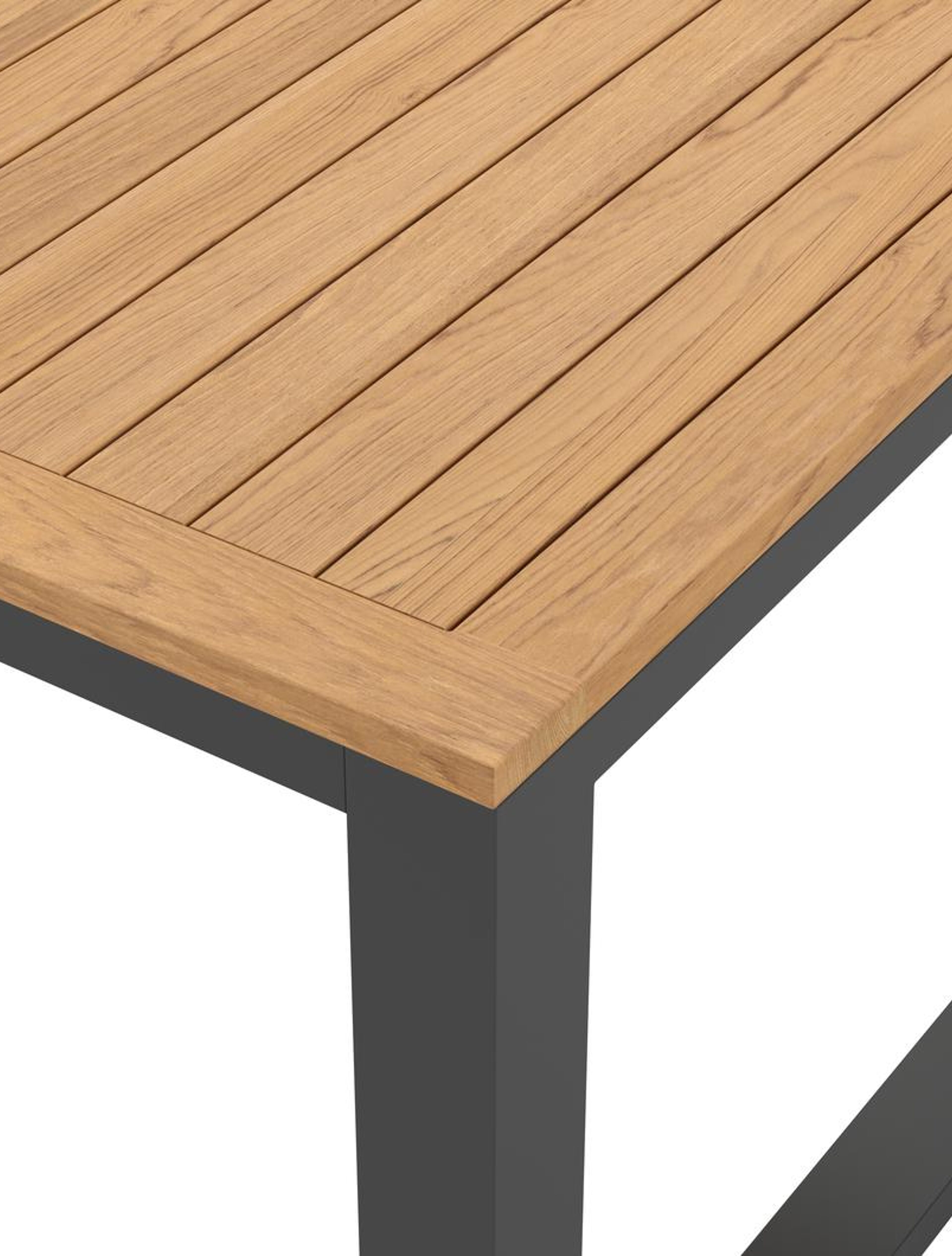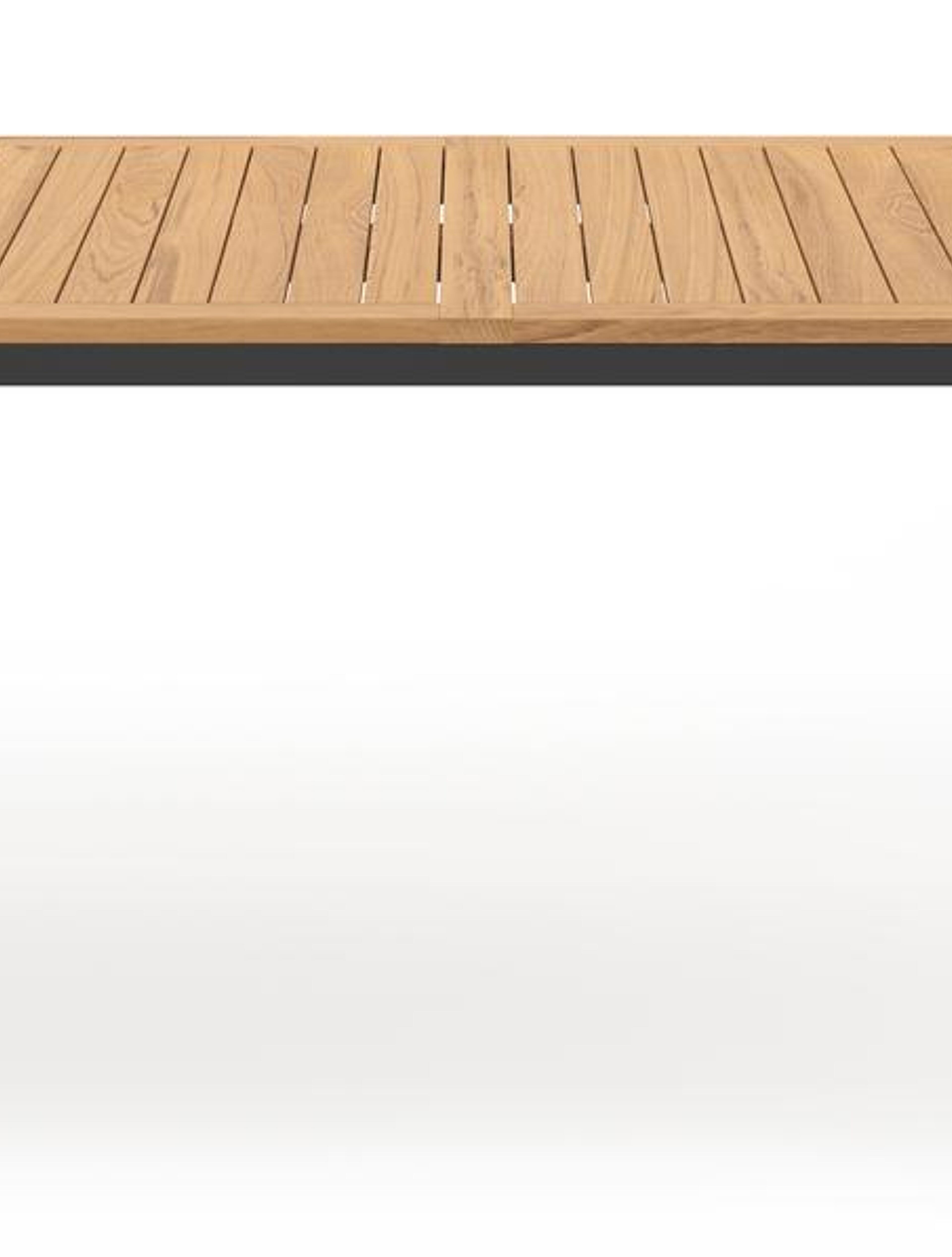 Een tafelblad uit teak staat gelijk aan bijzondere kwaliteit en natuurlijk design. Teak is een kwalitatieve houtsoort gekenmerkt door zijn hardheid. Aangezien hout leeft, kan de structuur of kleur licht anders zijn dan op het beeld weergegeven.