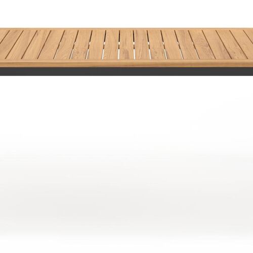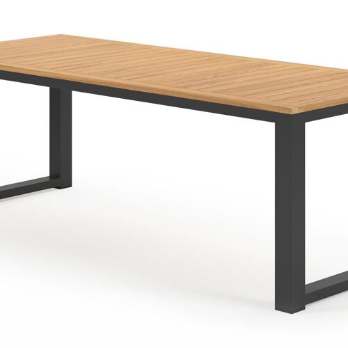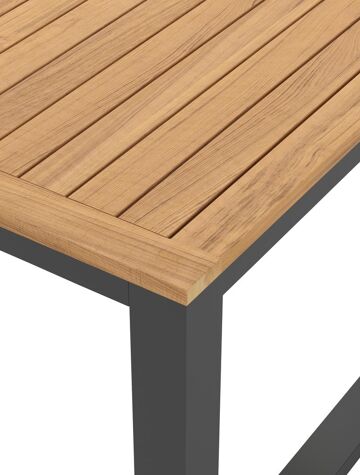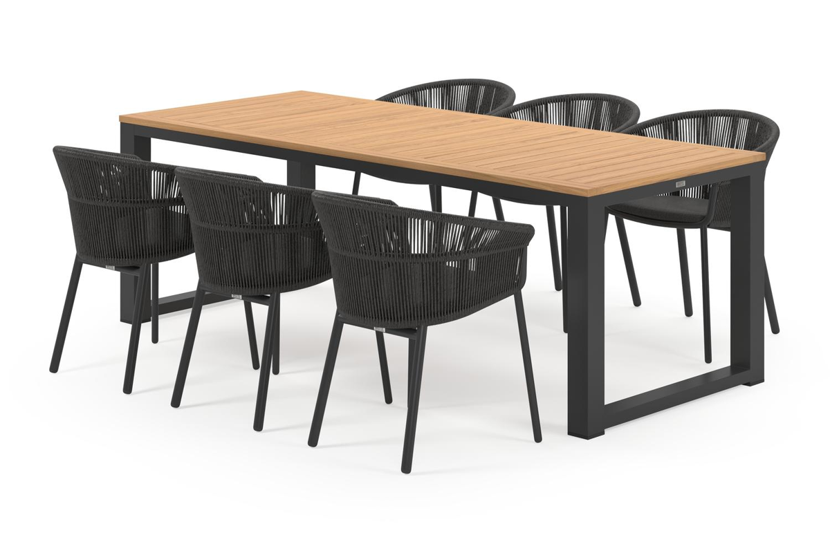 Livo tuinset in zwart aluminium en natural finish teak tafelblad met 6 stapelbare Matera tuinstoelen | Exterioo