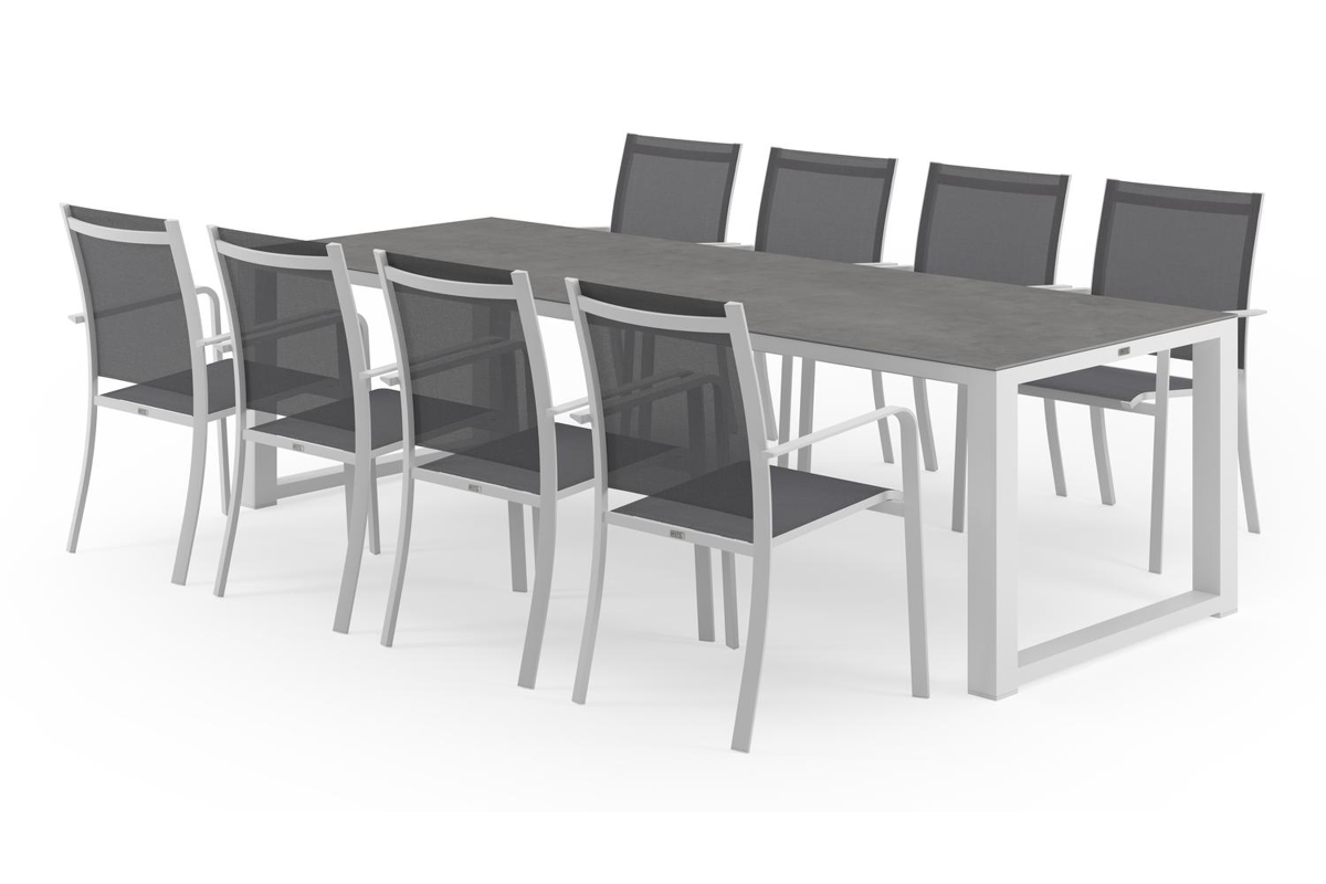 Het frame van de tafel is gemaakt uit roestvrij aluminium, een sterk, maar toch licht materiaal dat makkelijk verplaatsbaar is. Het oppervlak is glad afgewerkt waardoor het geen vuil aantrekt en onderhoudsvriendelijk is. De poedercoating zorgt voor de UV- en weerbestendigheid van je meubel.