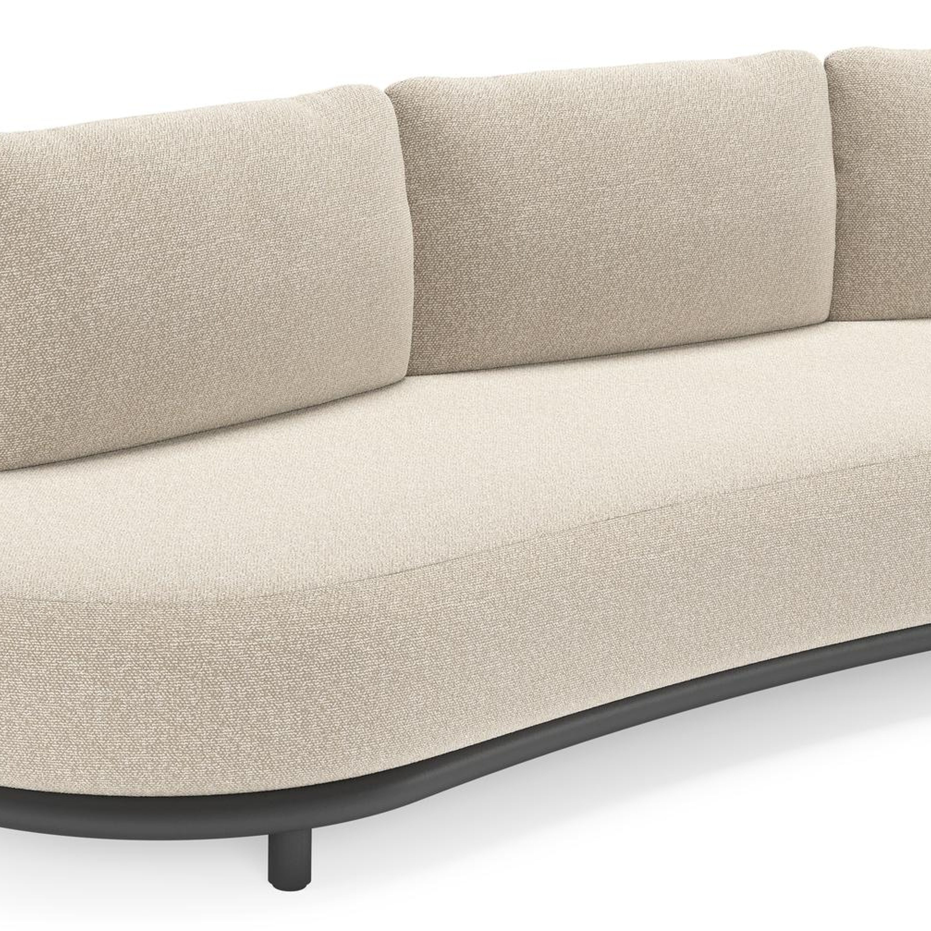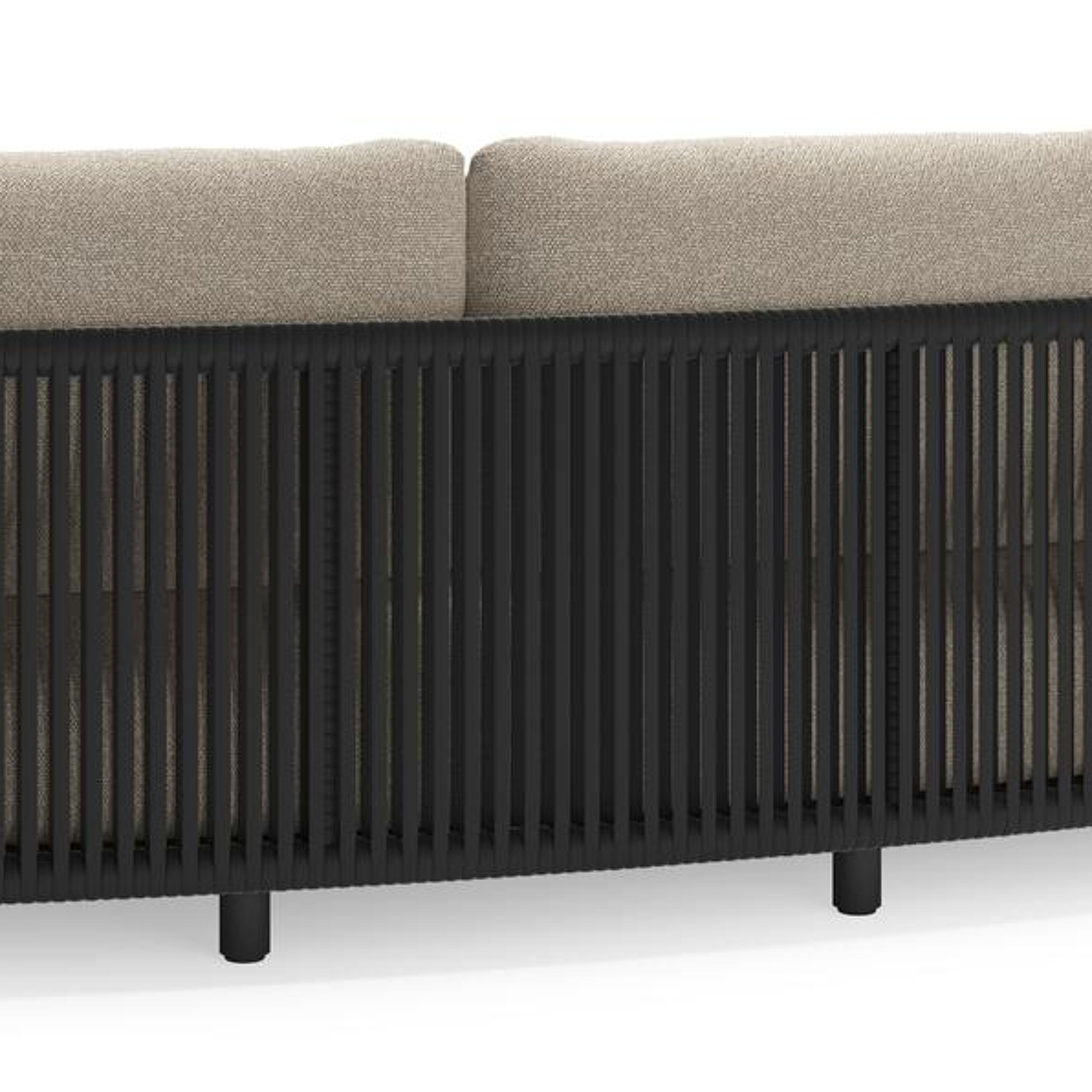 Lomano loungebank in zwart aluminium en zwart verticaal geweven luxe vlakke rope met marbella ecru all weather cosytica kussen | Exterioo tuinmeubelen