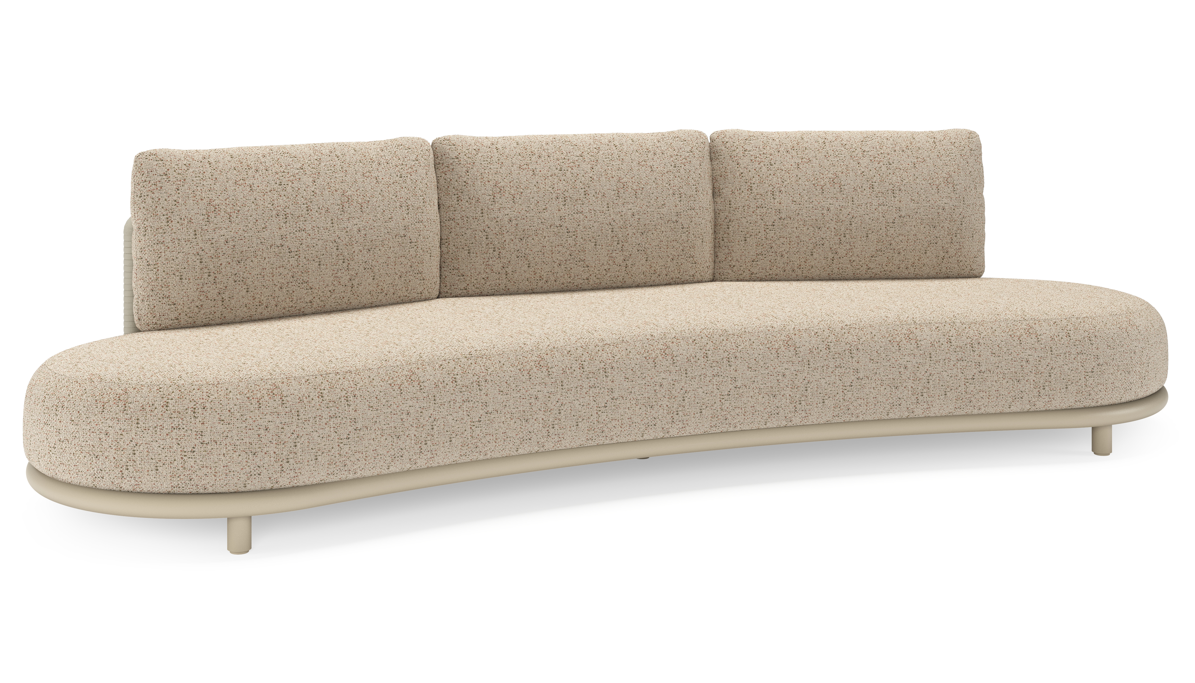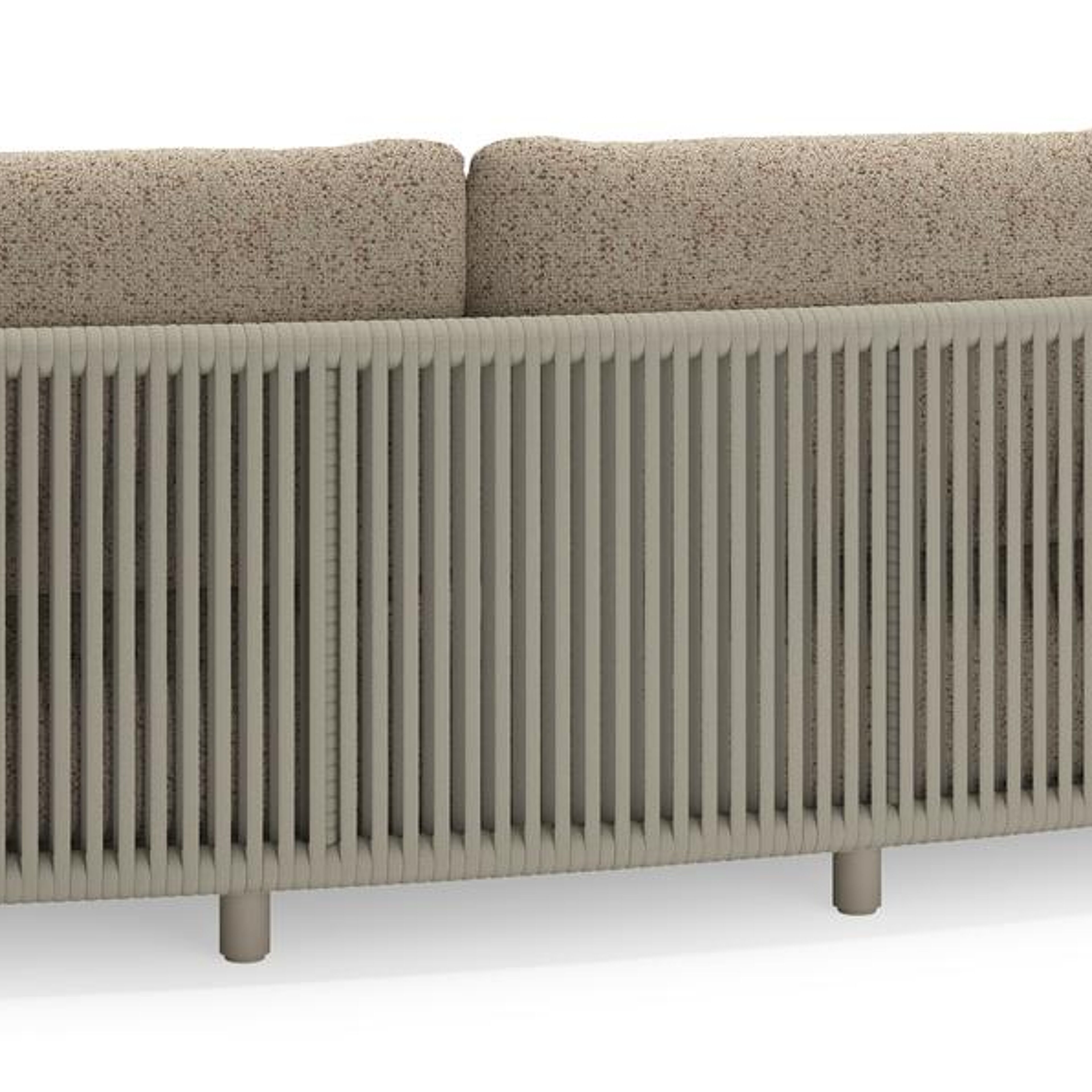 Lomano loungebank in beige aluminium en beige verticaal geweven luxe vlakke rope met Bora Jungle all weather cosytica | Exterioo tuinmeubelen