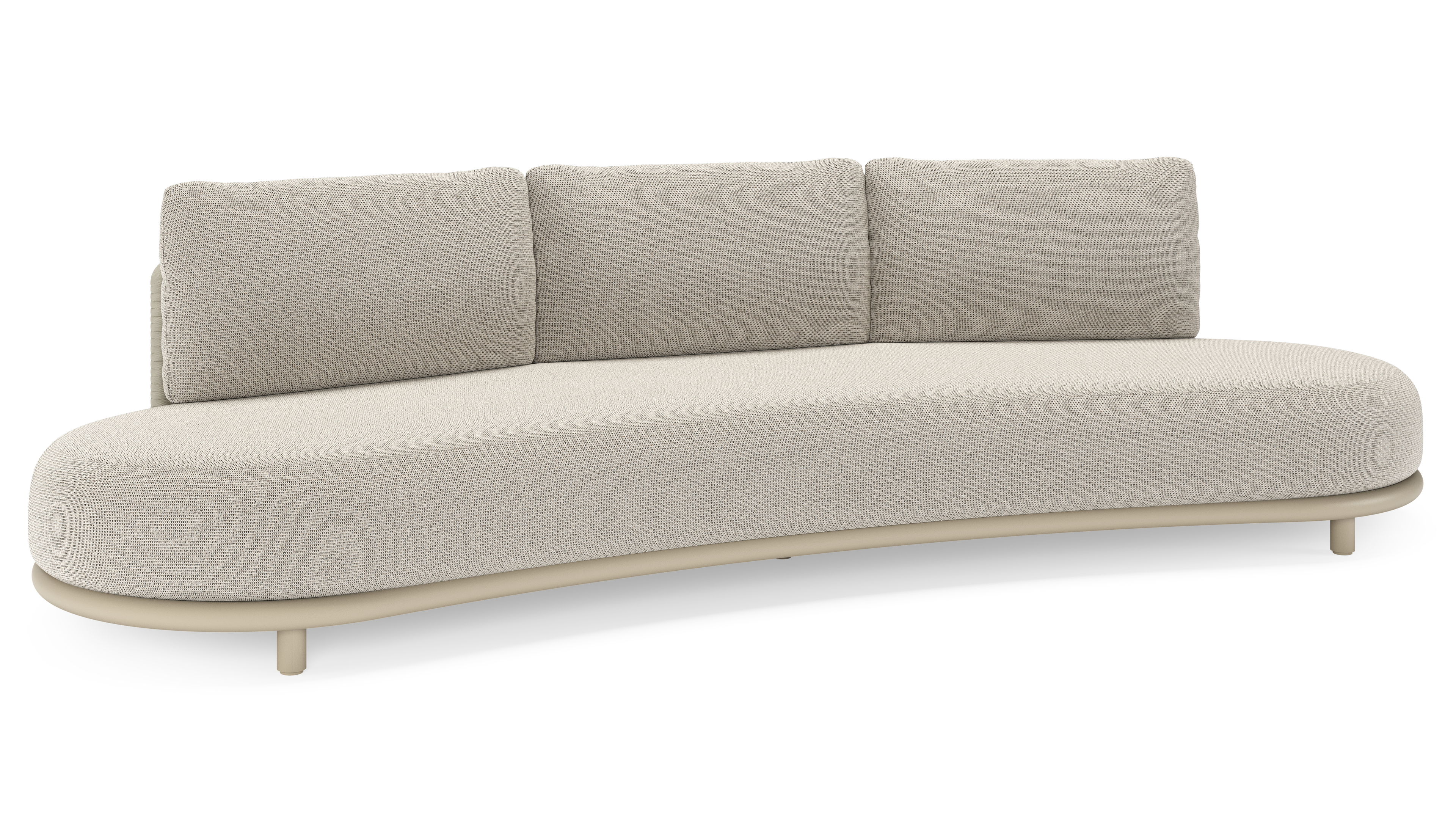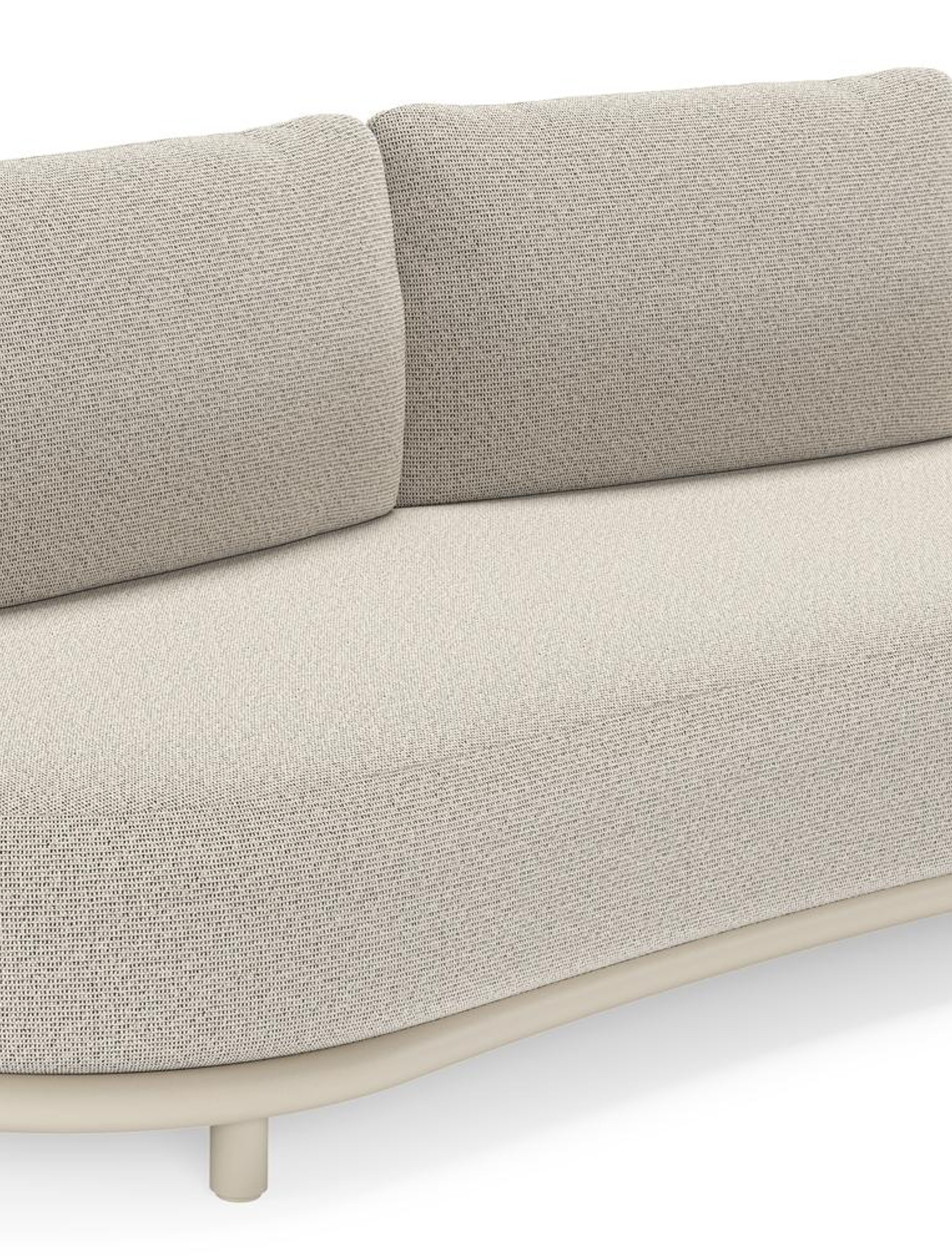 Lomano loungebank in beige aluminium en beige verticaal geweven luxe vlakke rope met Firenze Sand all weather solica | Exterioo tuinmeubelen