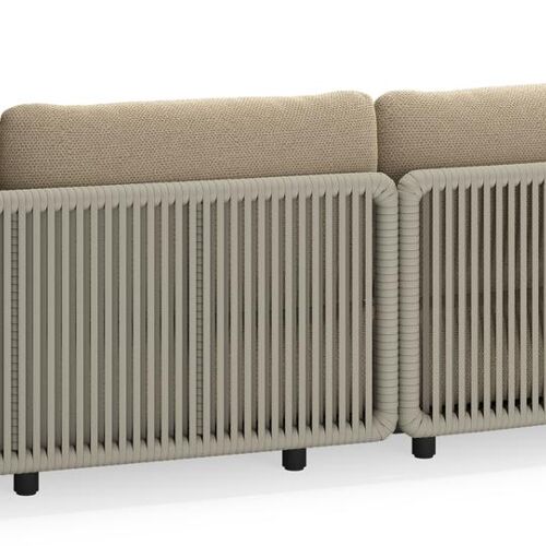 Lomano loungehoek in zwart aluminium en beige verticaal geweven luxe vlakke rope met Althea Camel all weather cosytica | Exterioo