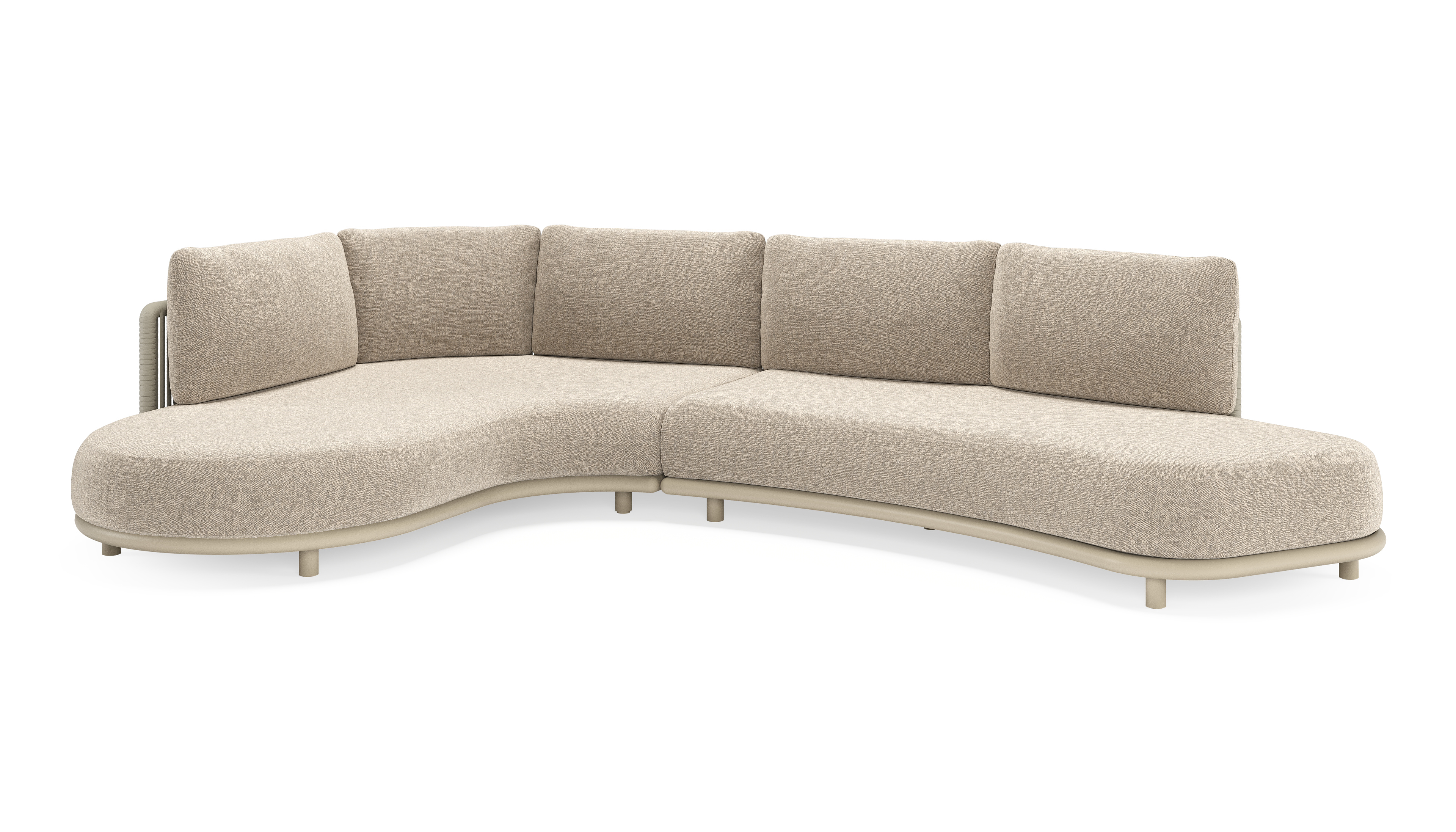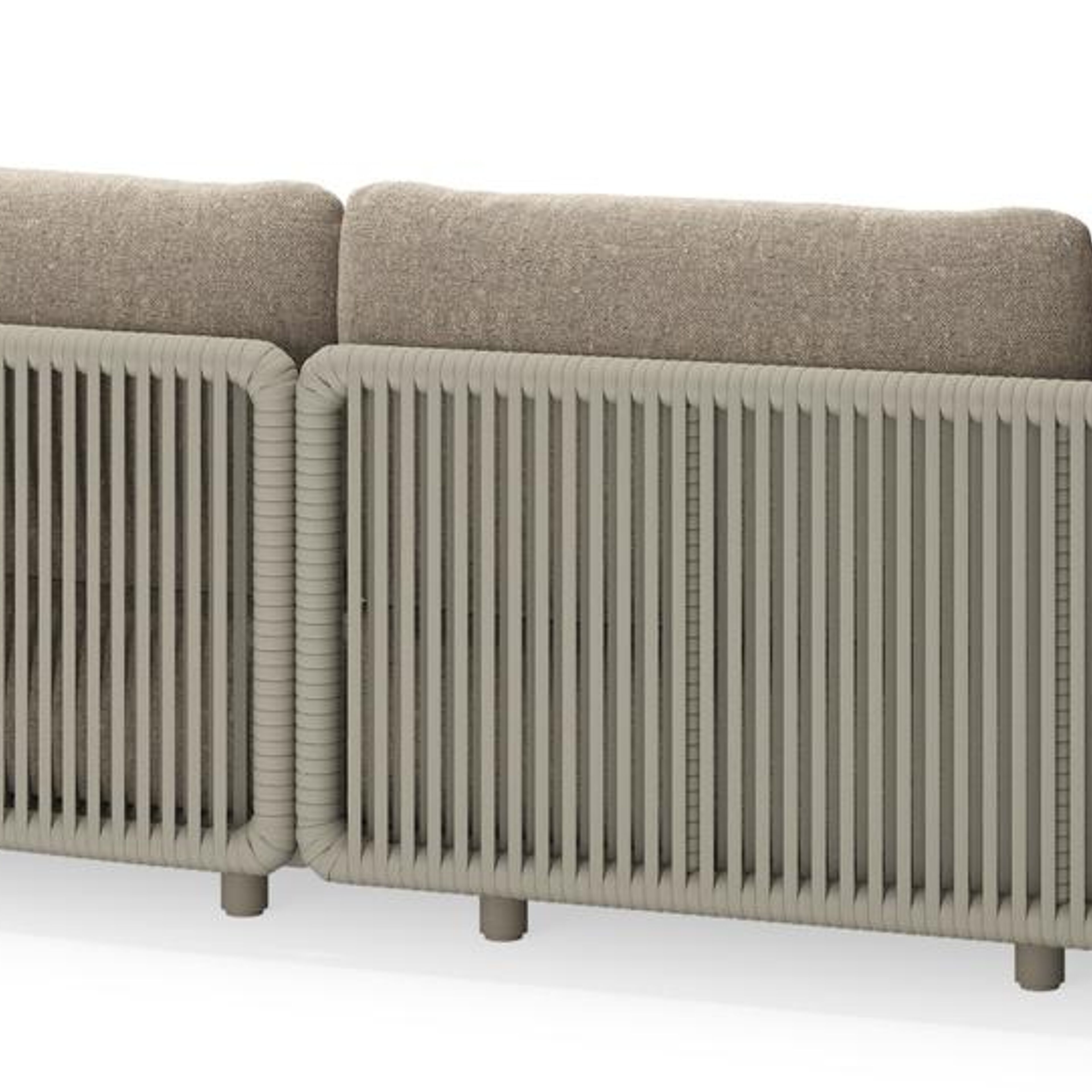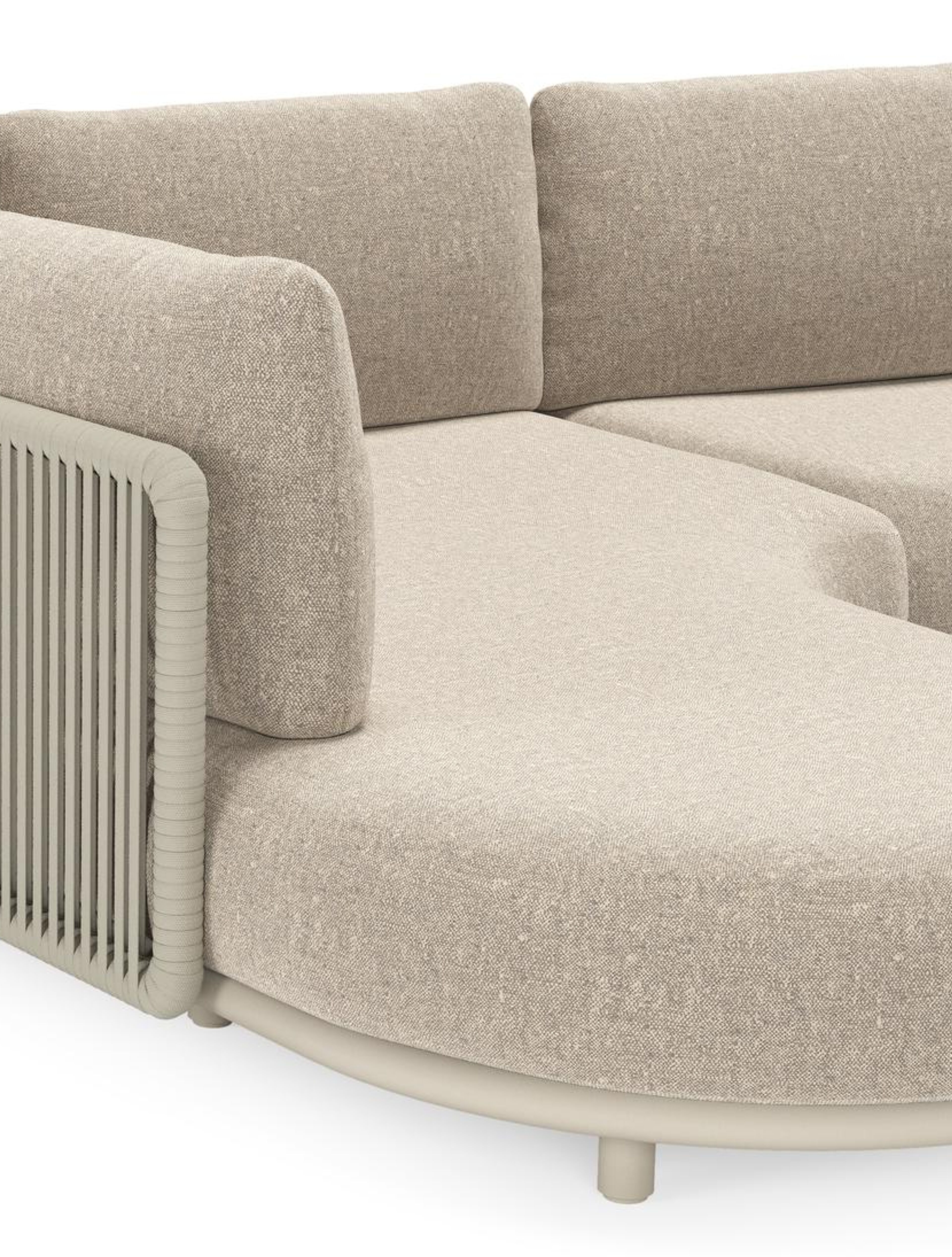 Lomano loungehoek in beige aluminium en beige verticaal geweven luxe vlakke rope met Chartres Pewter all weather sunbrella® luxe | Exterioo tuinmeubelen