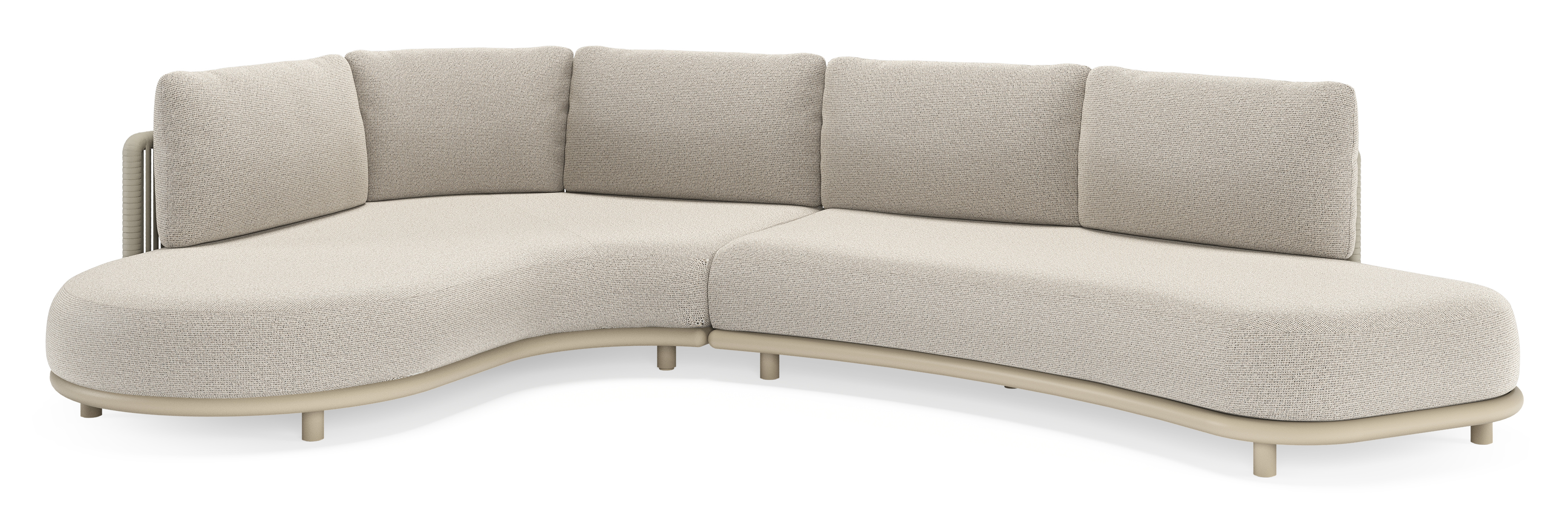Lomano loungehoek in beige aluminium en beige verticaal geweven luxe vlakke rope met Firenze Sand all weather solica | Exterioo tuinmeubelen