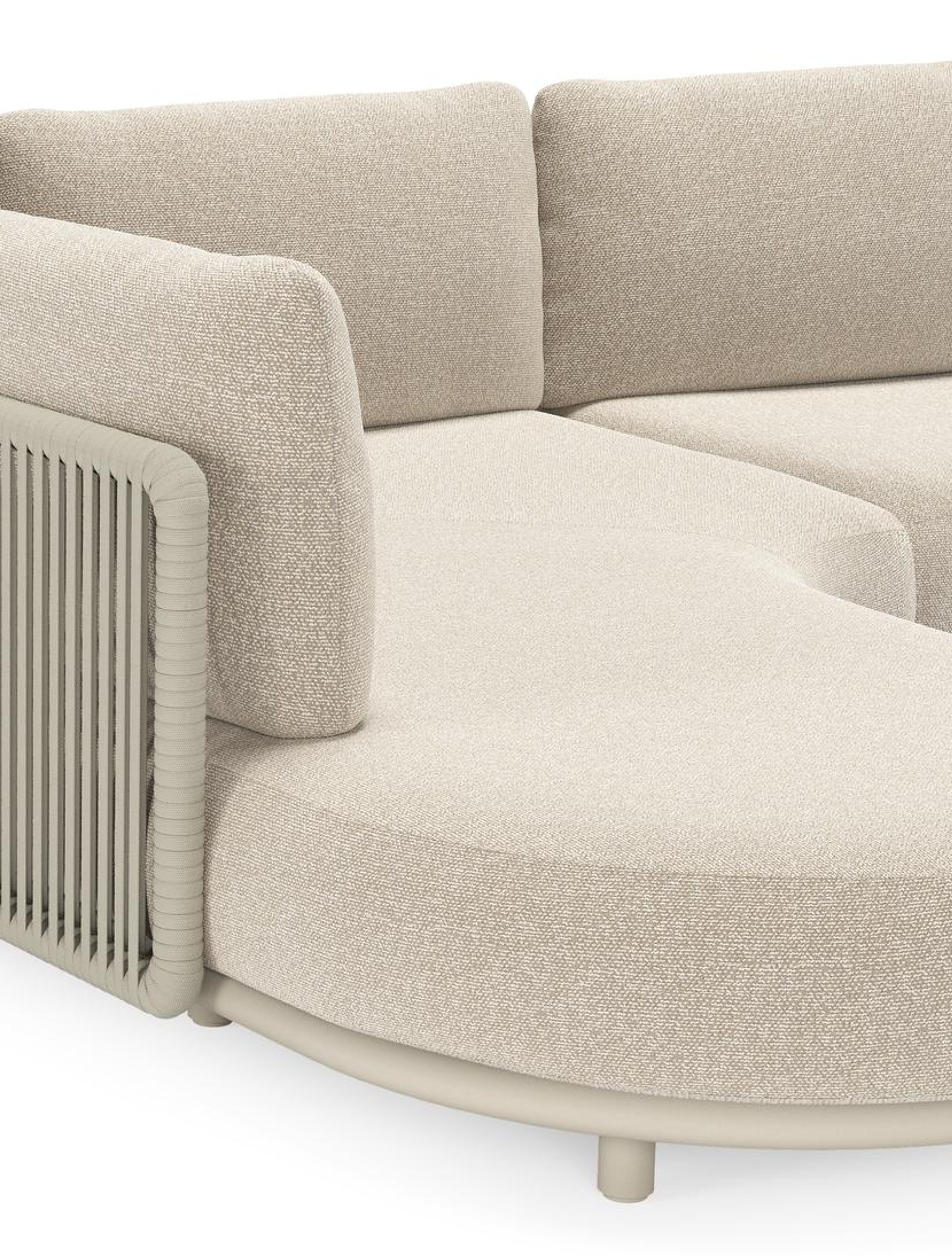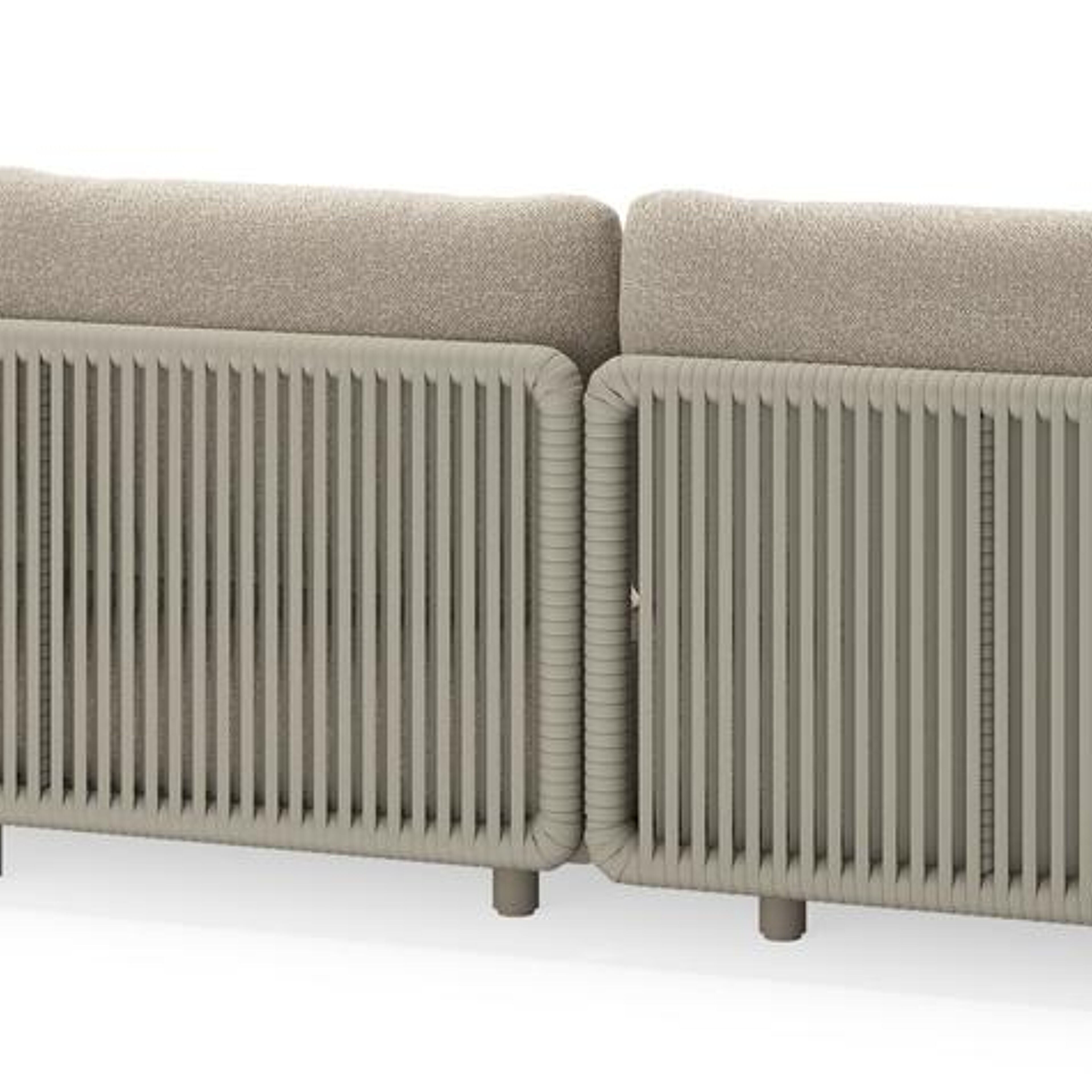 Lomano loungehoek in beige aluminium en beige verticaal geweven luxe vlakke rope met Marbella Ecru all weather cosytica | Exterioo tuinmeubelen