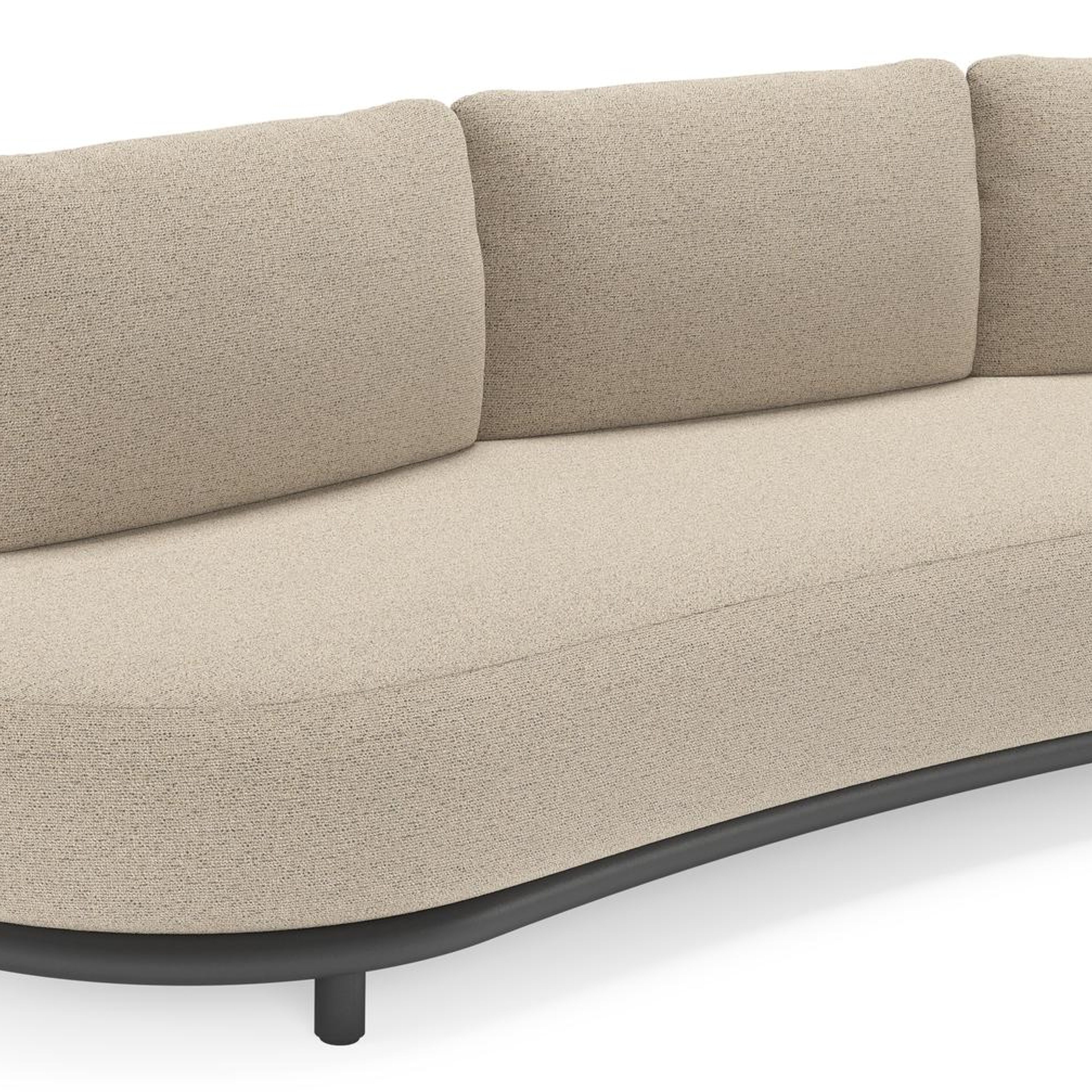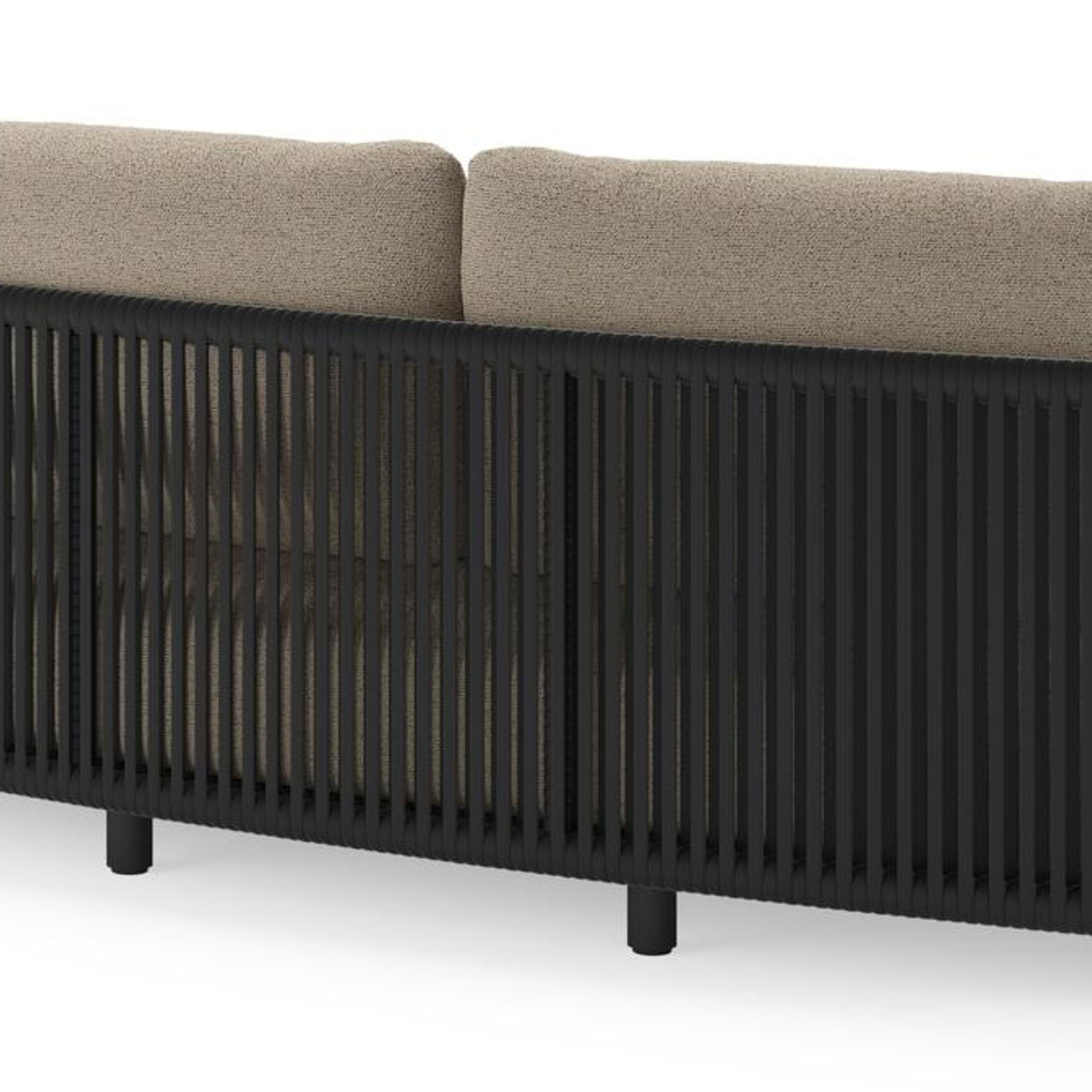 Lomano loungeset in zwart aluminium en zwart verticaal geweven luxe vlakke rope met marbella beige all weather cosytica kussen | Exterioo tuinmeubelen