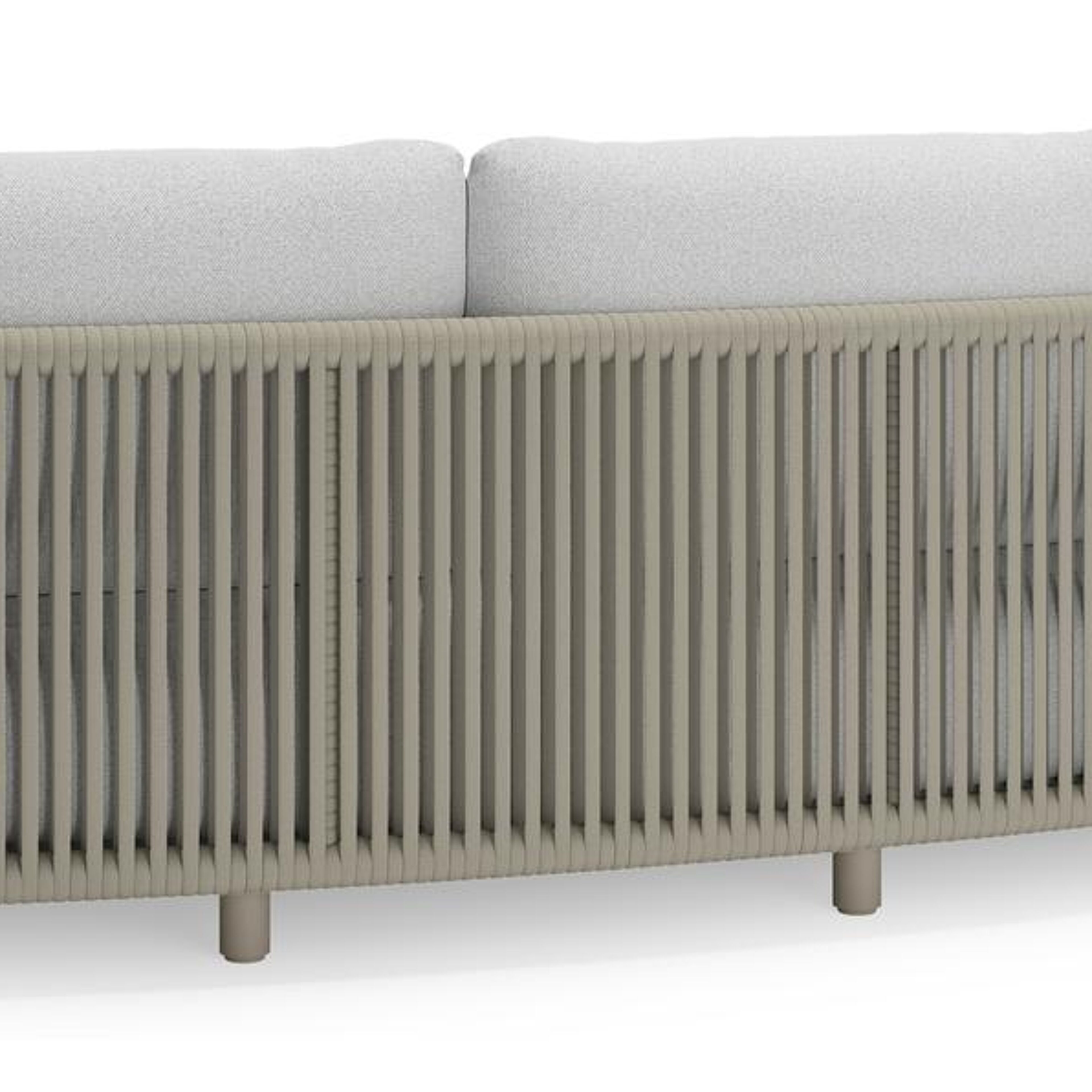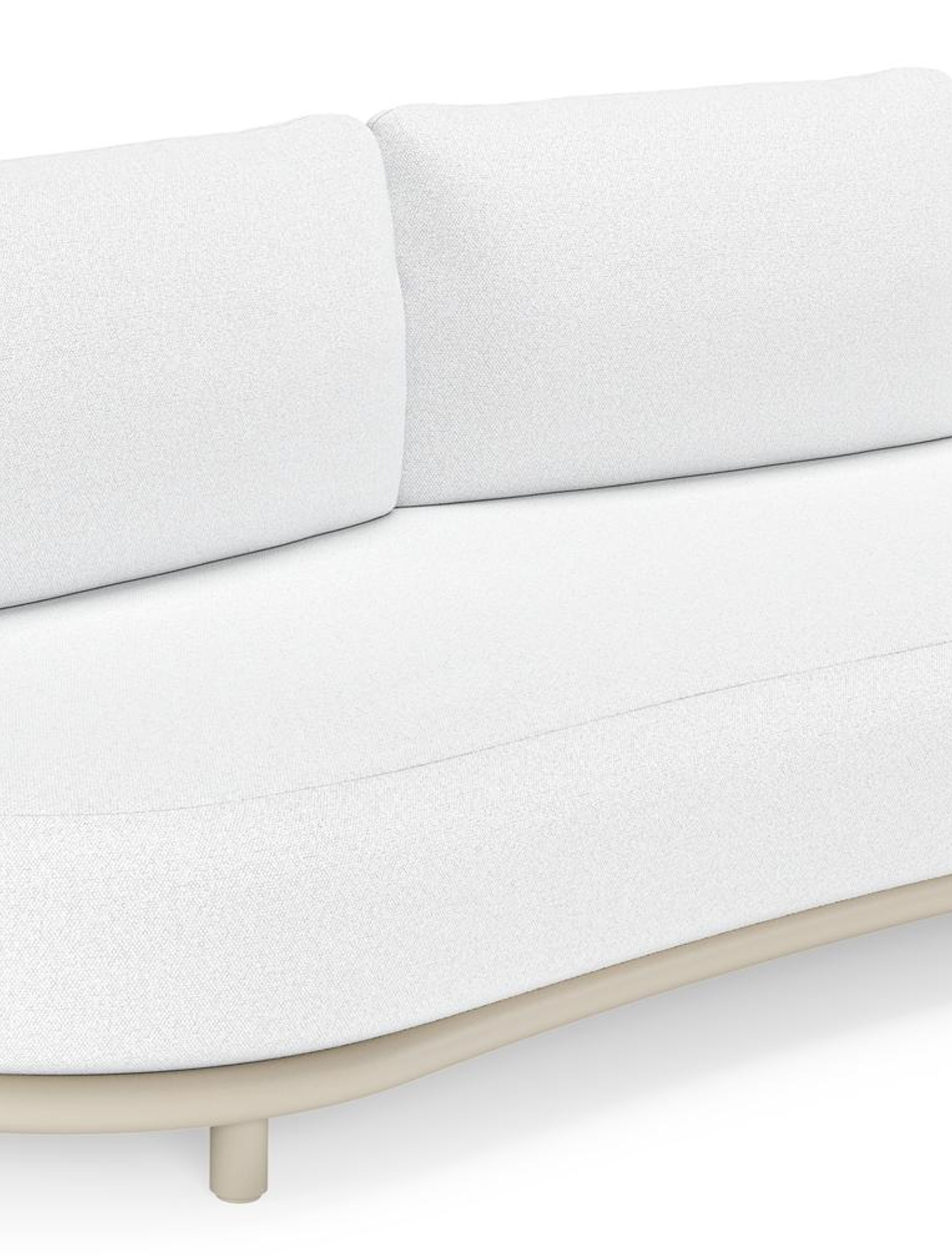 Lomano loungeset in beige aluminium en beige verticaal geweven luxe vlakke rope met Ego Birch all weather solica | Exterioo tuinmeubelen