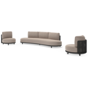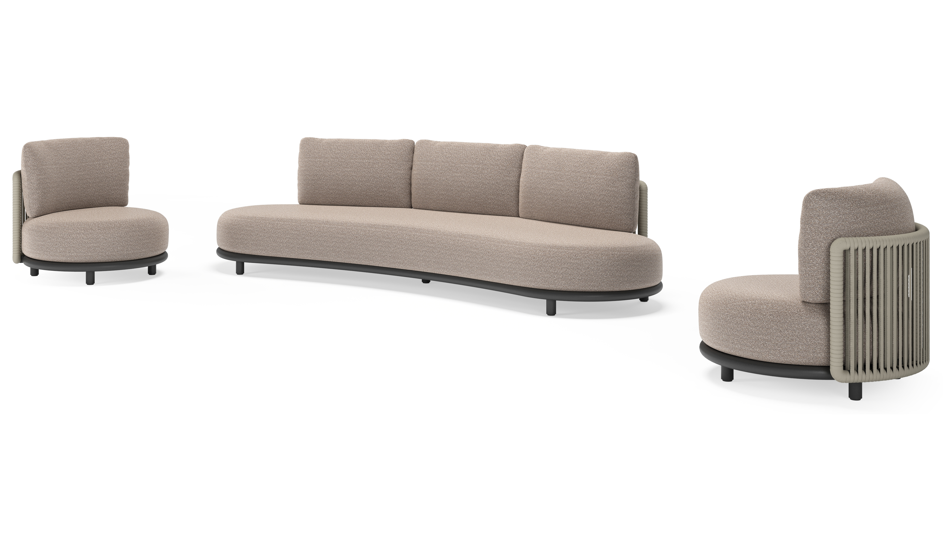 Lomano loungeset in zwart aluminium en beige verticaal geweven luxe vlakke rope met Wander Manioc all weather sunbrella® luxe | Exterioo tuinmeubelen