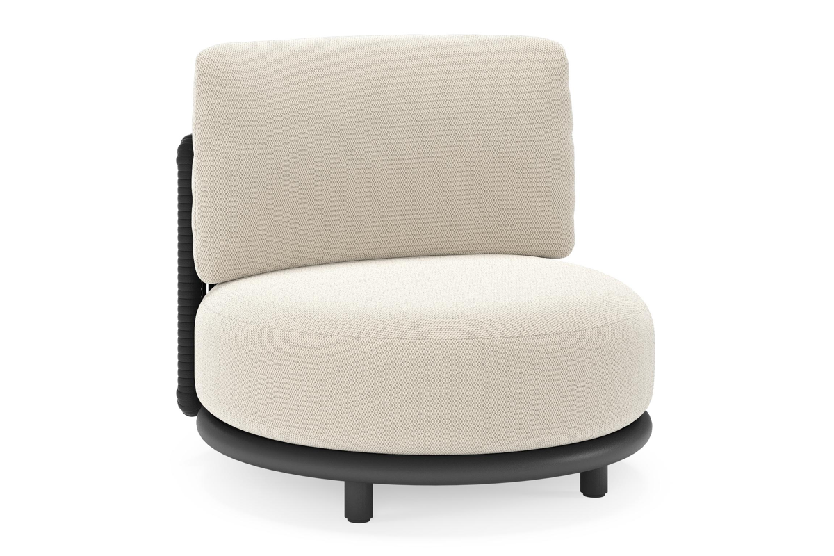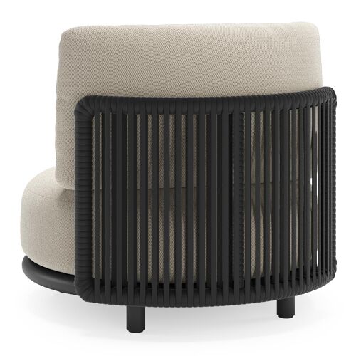 Lomano loungestoel in zwart aluminium en beige verticaal geweven luxe vlakke rope met lopi marble all weather sunbrella® luxe kussen | Exterioo