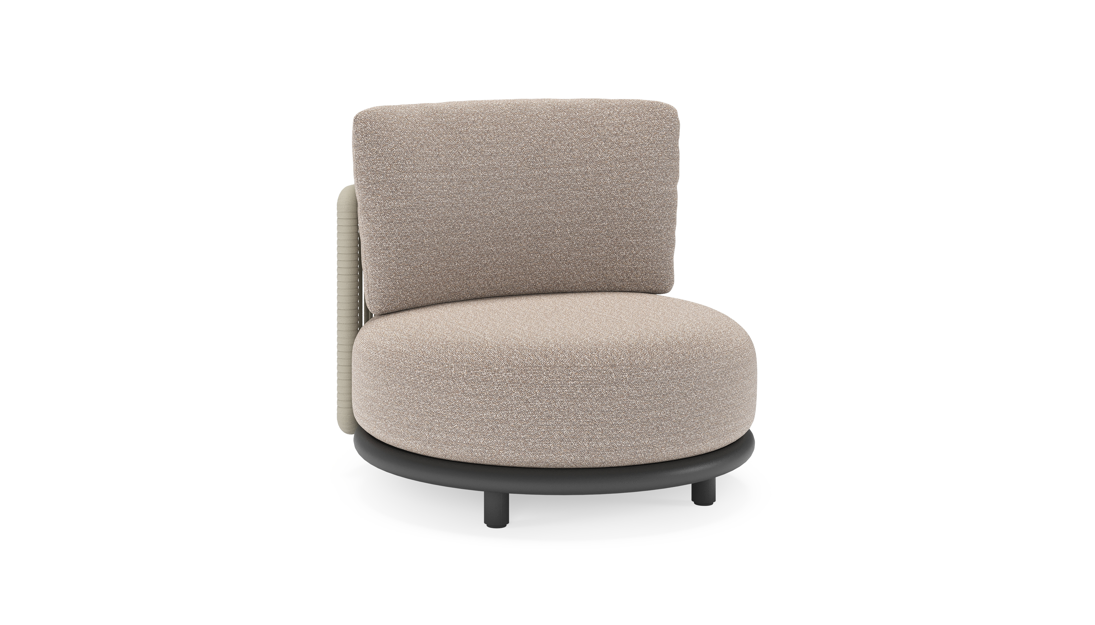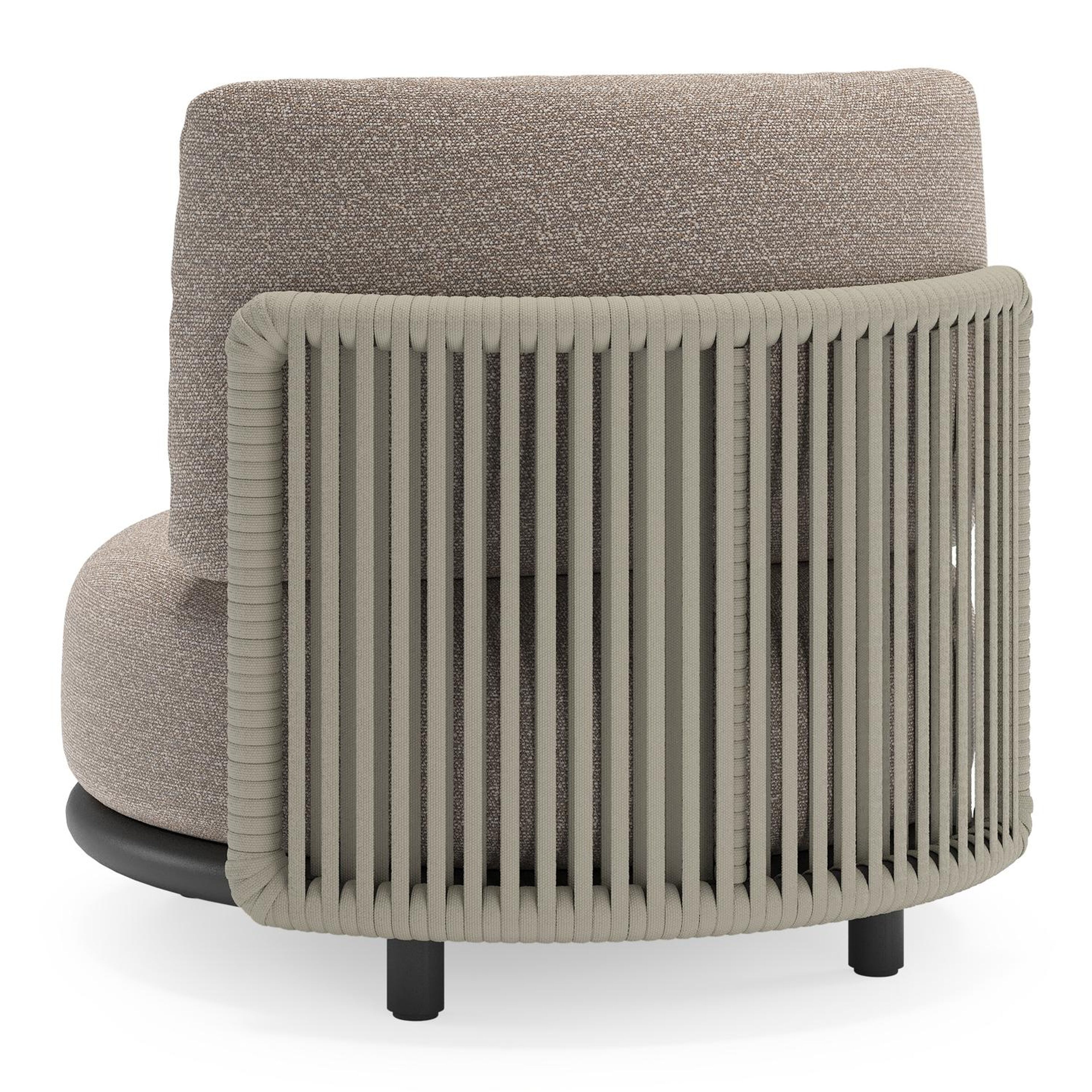 Lomano loungestoel in zwart aluminium en beige verticaal geweven luxe vlakke rope met Wander Manioc all weather sunbrella® luxe | Exterioo tuinmeubelen