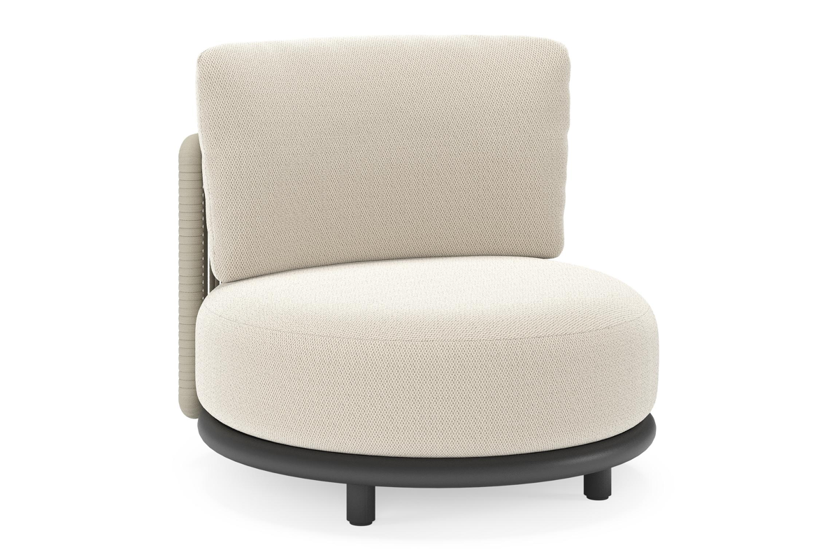 Lomano loungestoel in zwart aluminium en beige verticaal geweven luxe vlakke rope met Lopi Marble all weather sunbrella® luxe | Exterioo