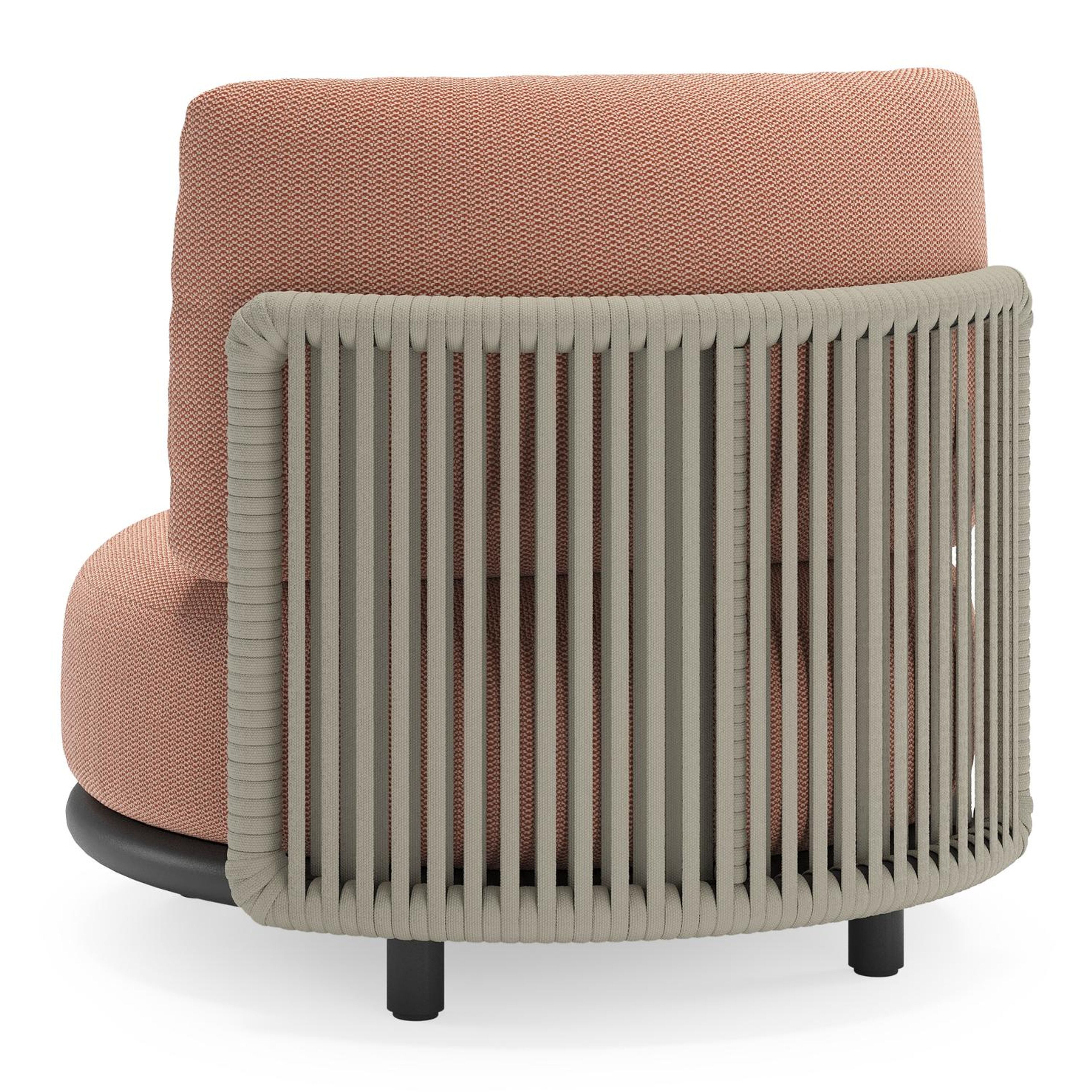 Lomano loungestoel in zwart aluminium en beige verticaal geweven luxe vlakke rope met Lopi Fawn all weather sunbrella® luxe | Exterioo tuinmeubelen