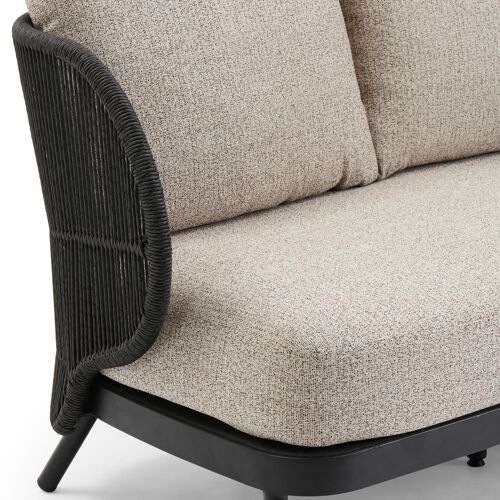 Lugano loungebank 3-zit in zwart aluminium en zwart gedraaide ronde wicker met catania beige All Weather Cosytica kussen | Exterioo
