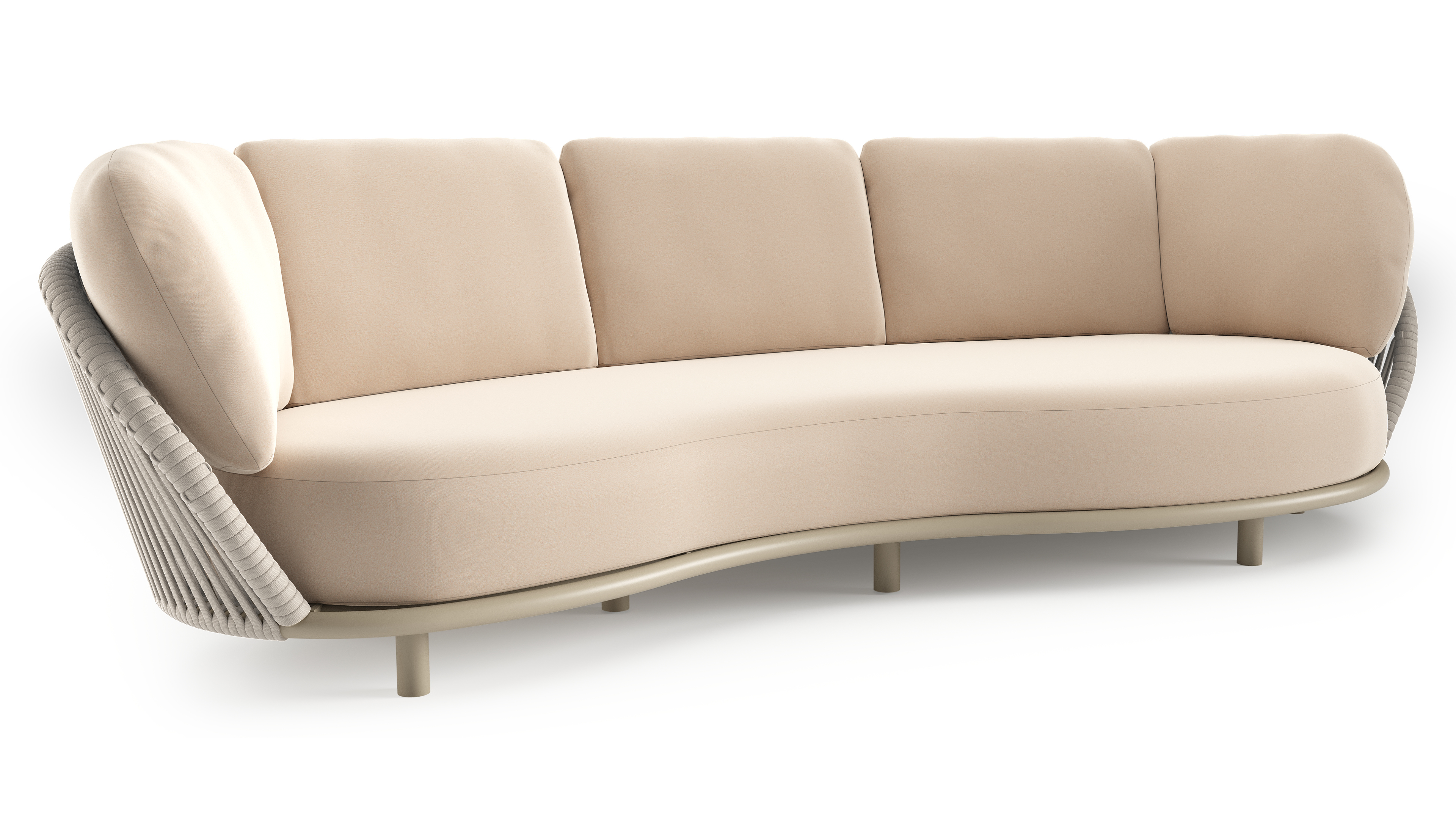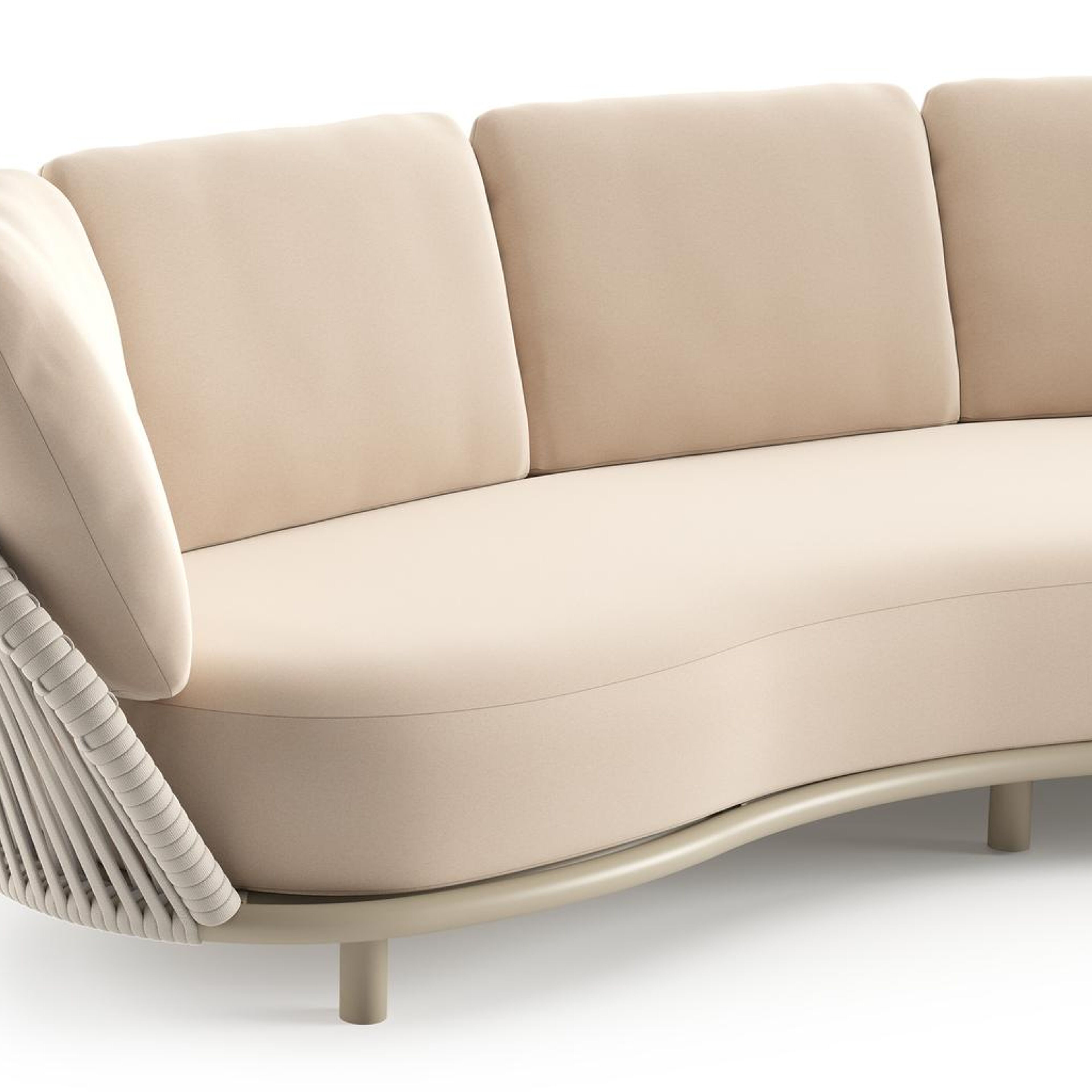 Lupino loungebank in beige aluminium en beige verticaal geweven luxe vlakke brede rope met natte linen chalk all weather sunbrella® luxe kussen | Exterioo tuinmeubelen