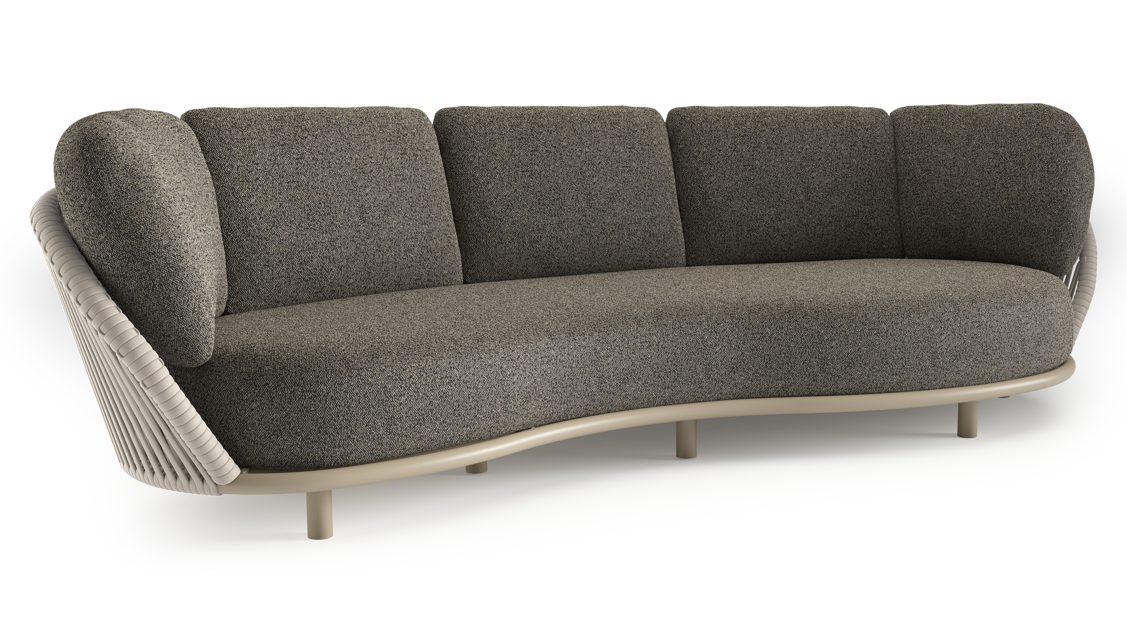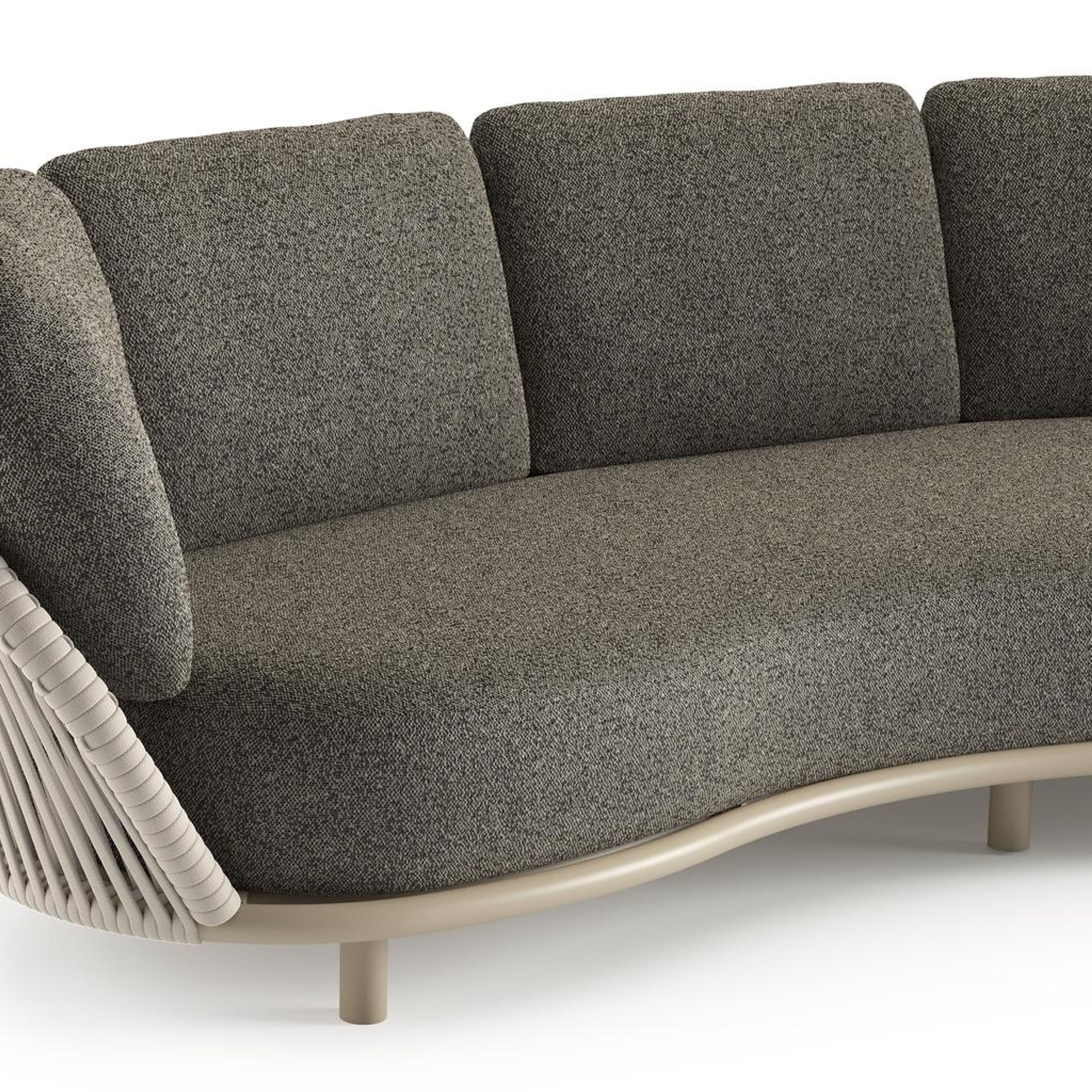Lupino loungebank in beige aluminium en beige verticaal geweven luxe vlakke brede rope met marbella tunder all weather cosytica kussen | Exterioo tuinmeubelen