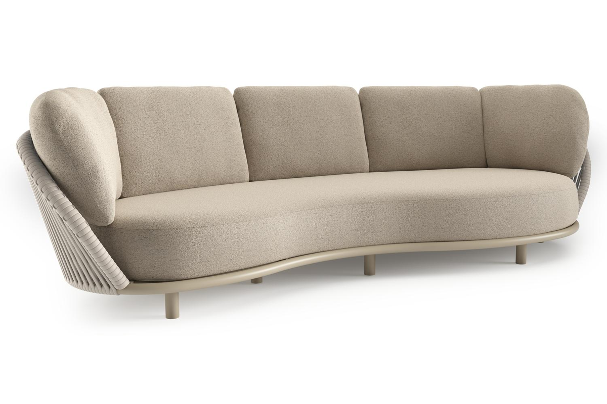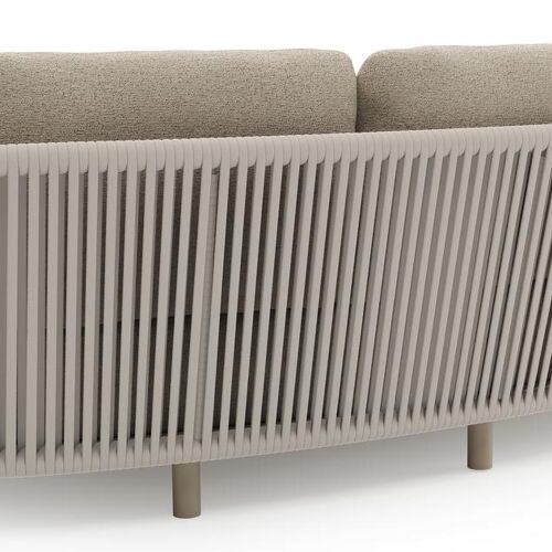 Lupino loungebank in beige aluminium en beige verticaal geweven luxe vlakke brede rope met marbella beige all weather cosytica kussen | Exterioo