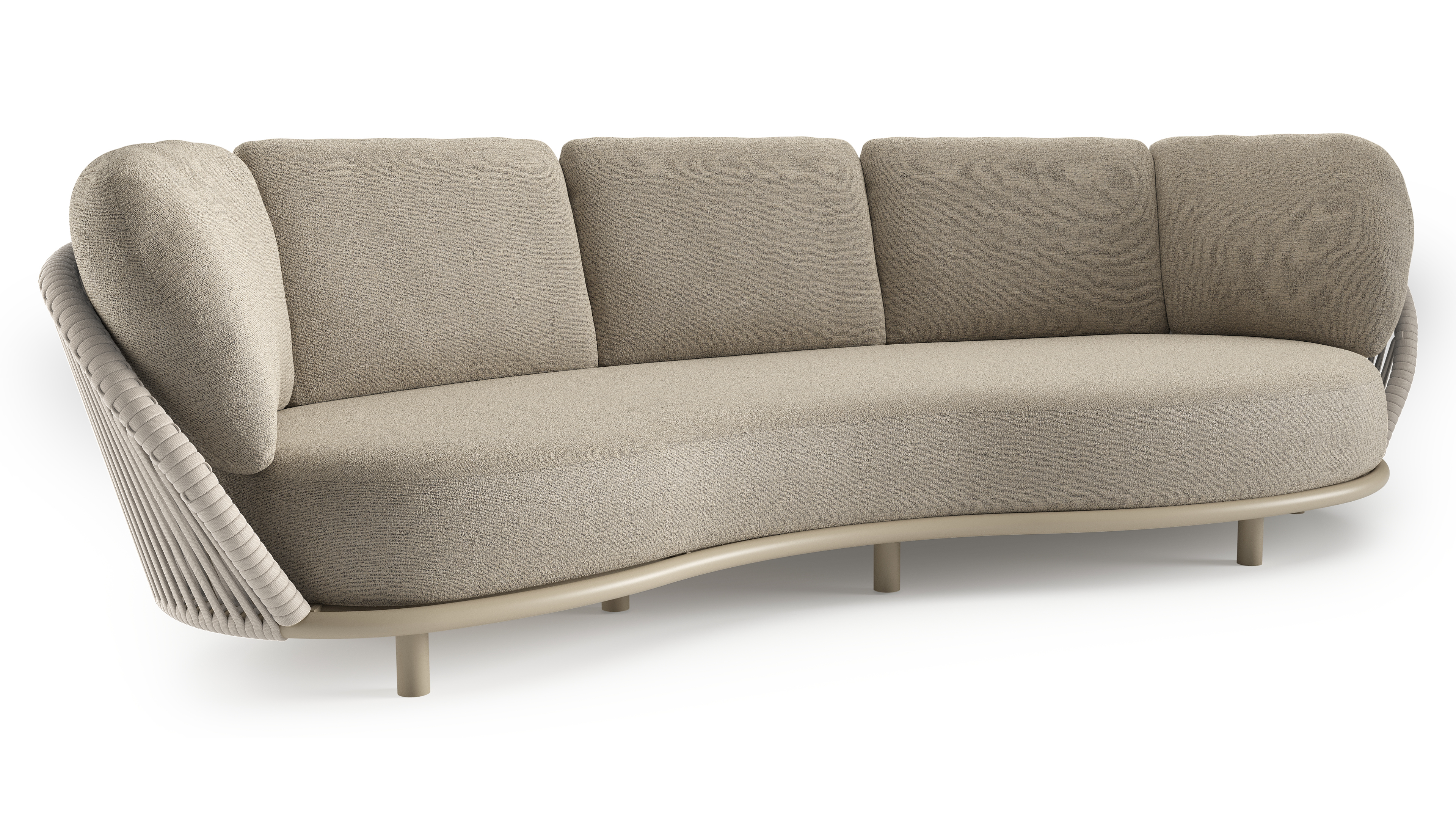 Lupino loungebank in beige aluminium en beige verticaal geweven luxe vlakke brede rope met catania beige all weather cosytica kussen | Exterioo tuinmeubelen