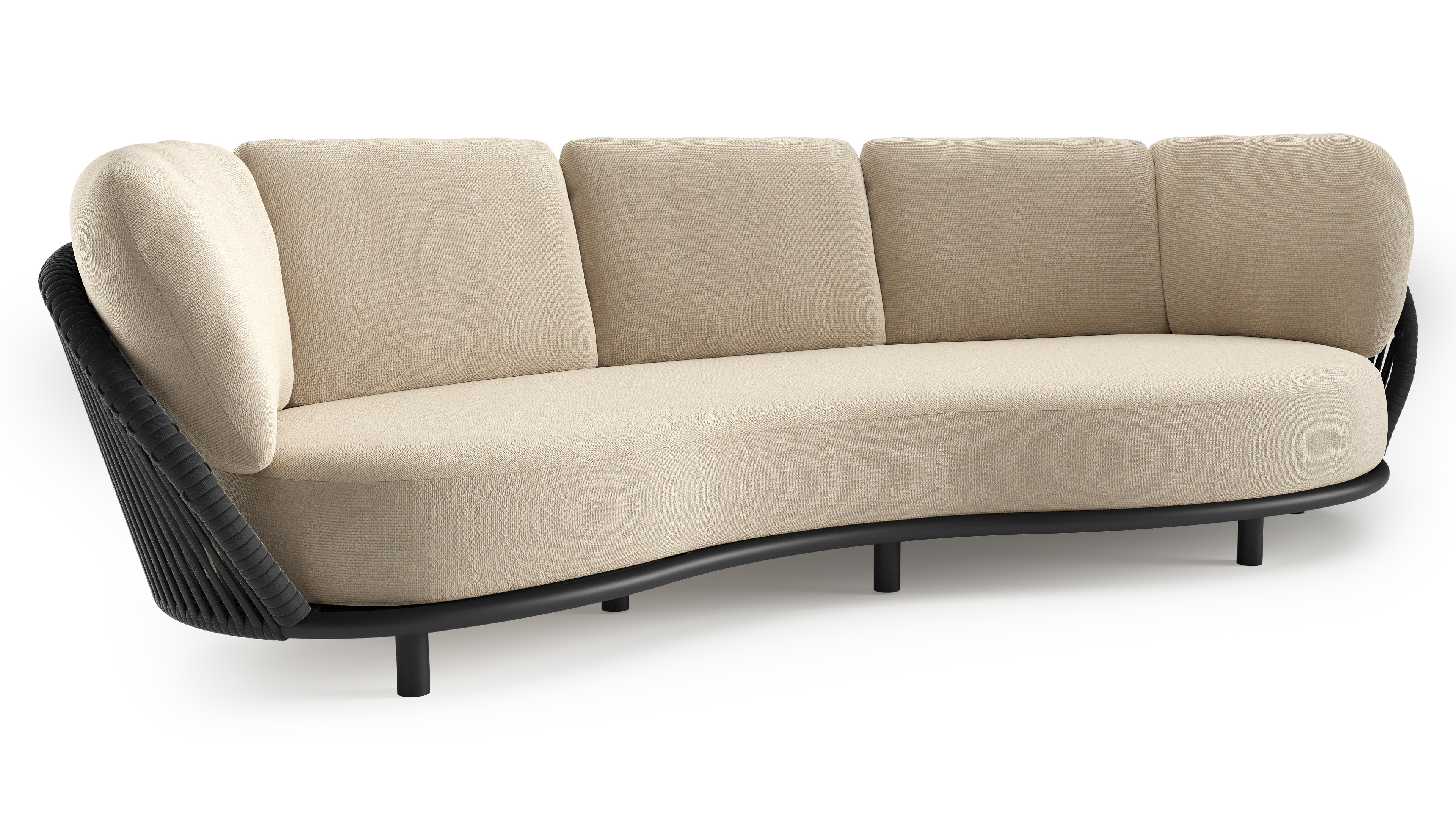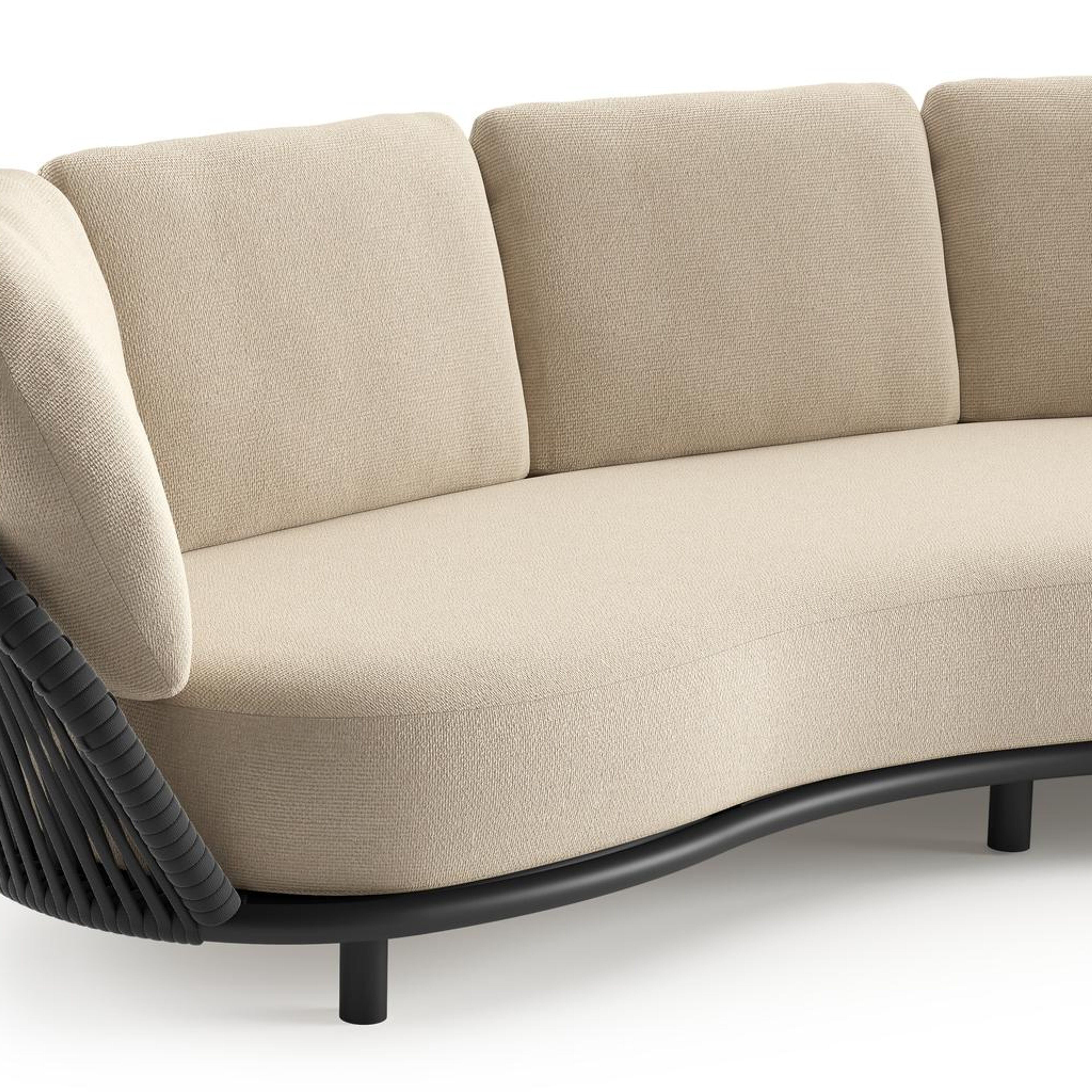 Lupino loungebank in zwart aluminium en zwart verticaal geweven luxe vlakke brede rope met althea chalk all weather cosytica kussen | Exterioo tuinmeubelen