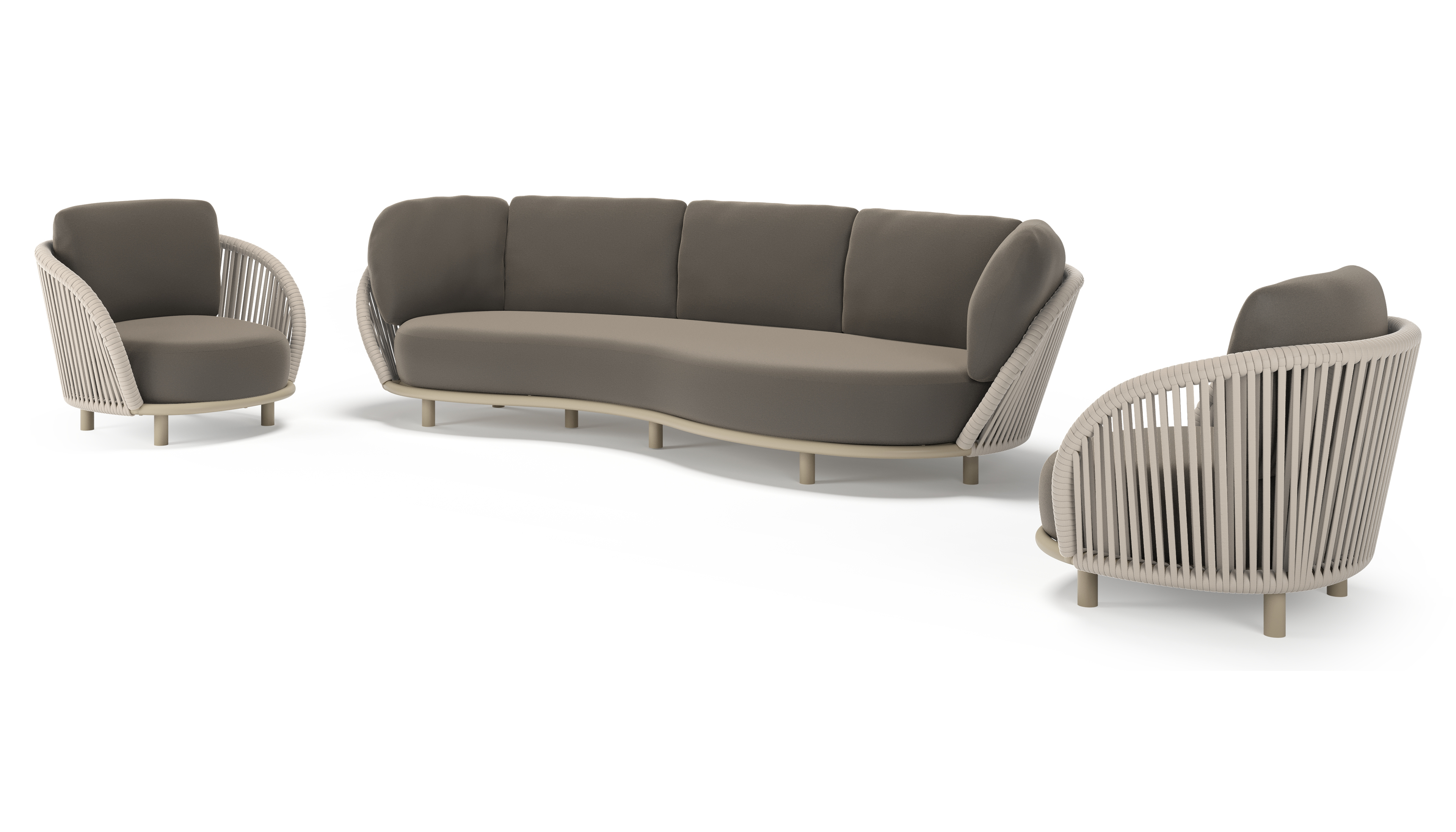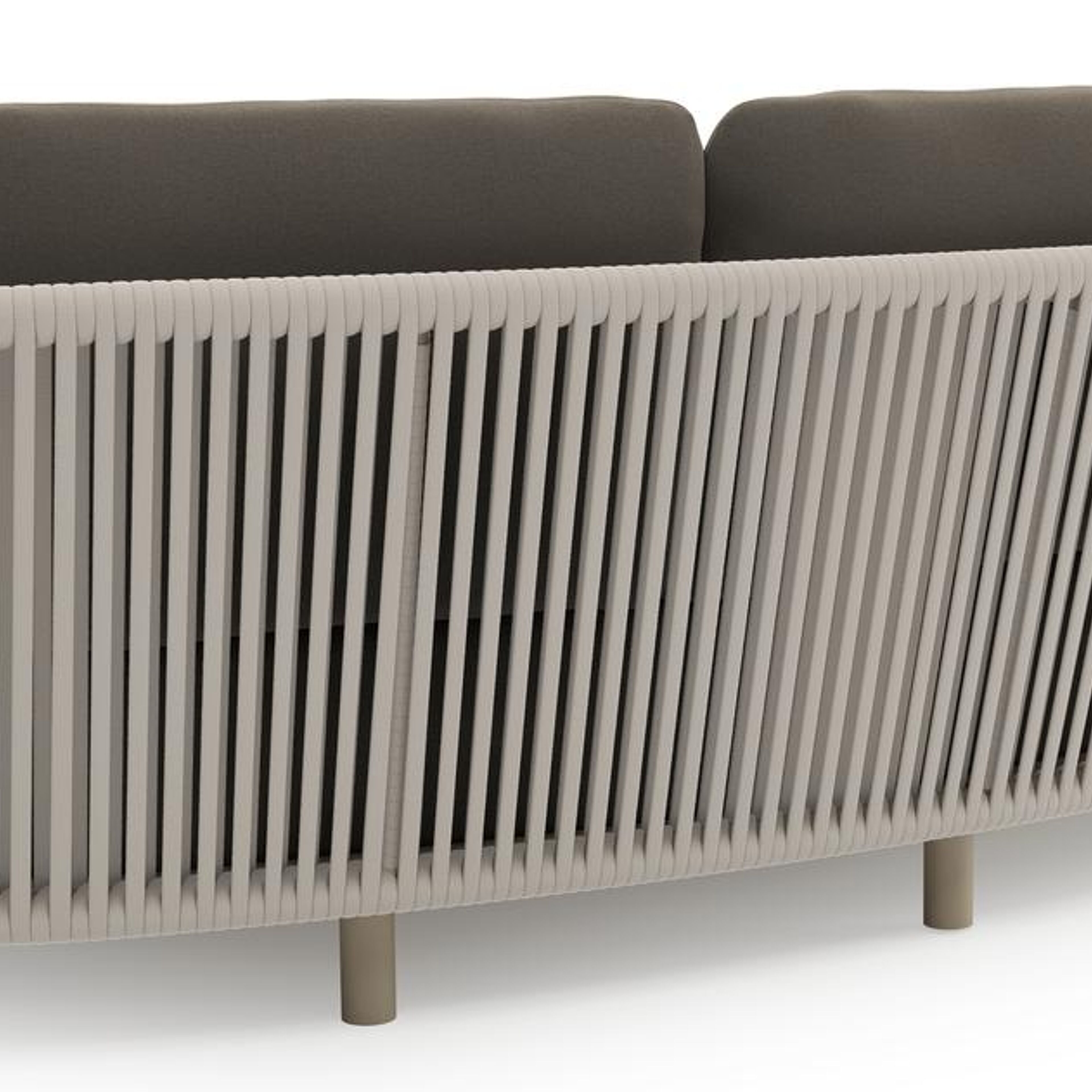 Lupino loungeset in beige aluminium en beige verticaal geweven luxe vlakke brede rope met natte carbon beige all weather sunbrella® luxe kussen | Exterioo tuinmeubelen