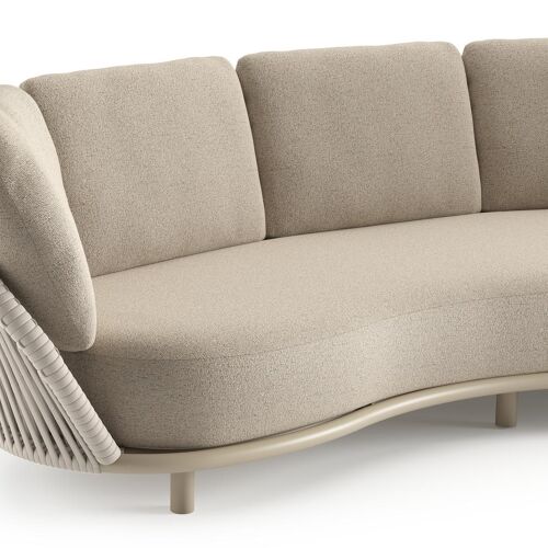 Lupino loungeset in beige aluminium en beige verticaal geweven luxe vlakke brede rope met marbella beige all weather cosytica kussen | Exterioo