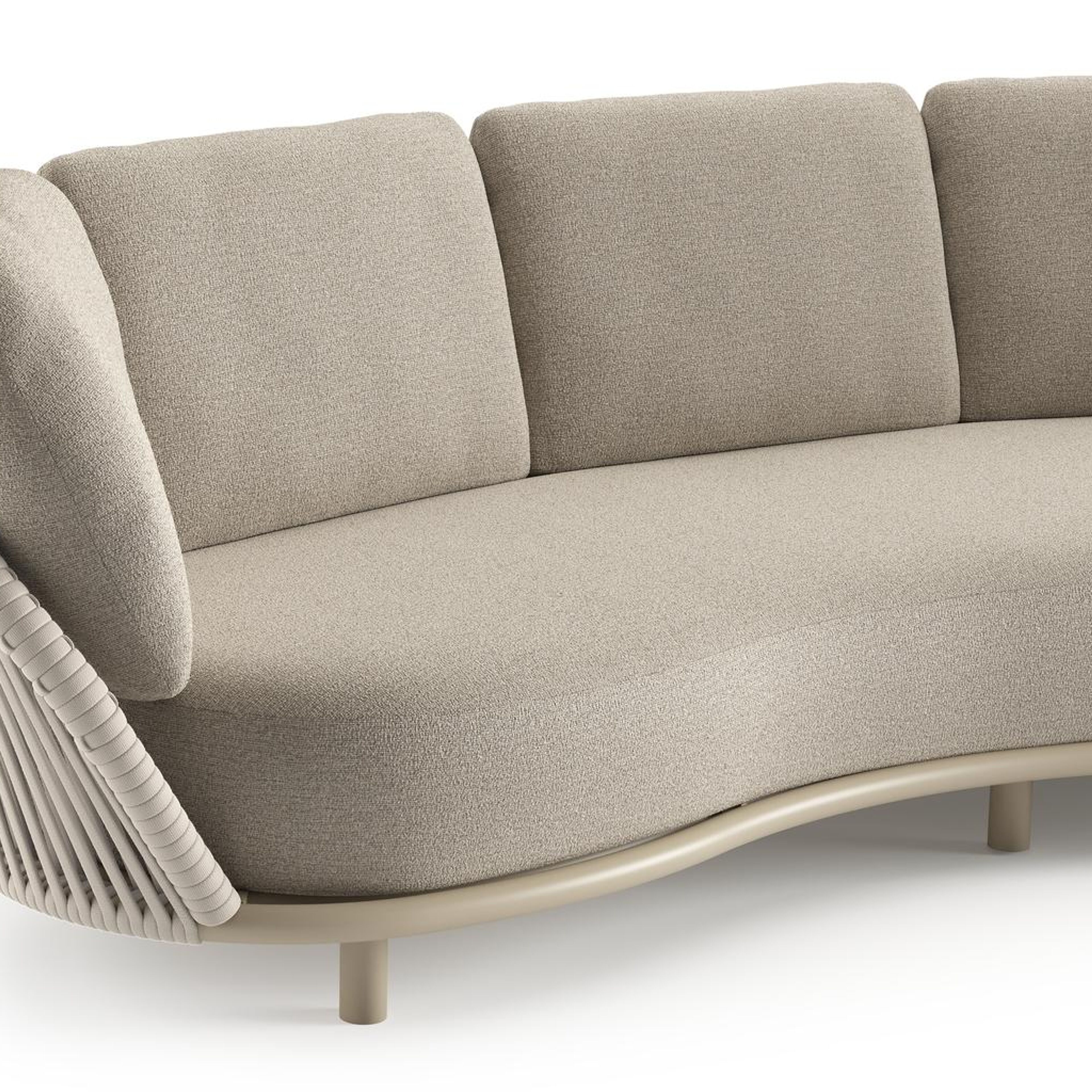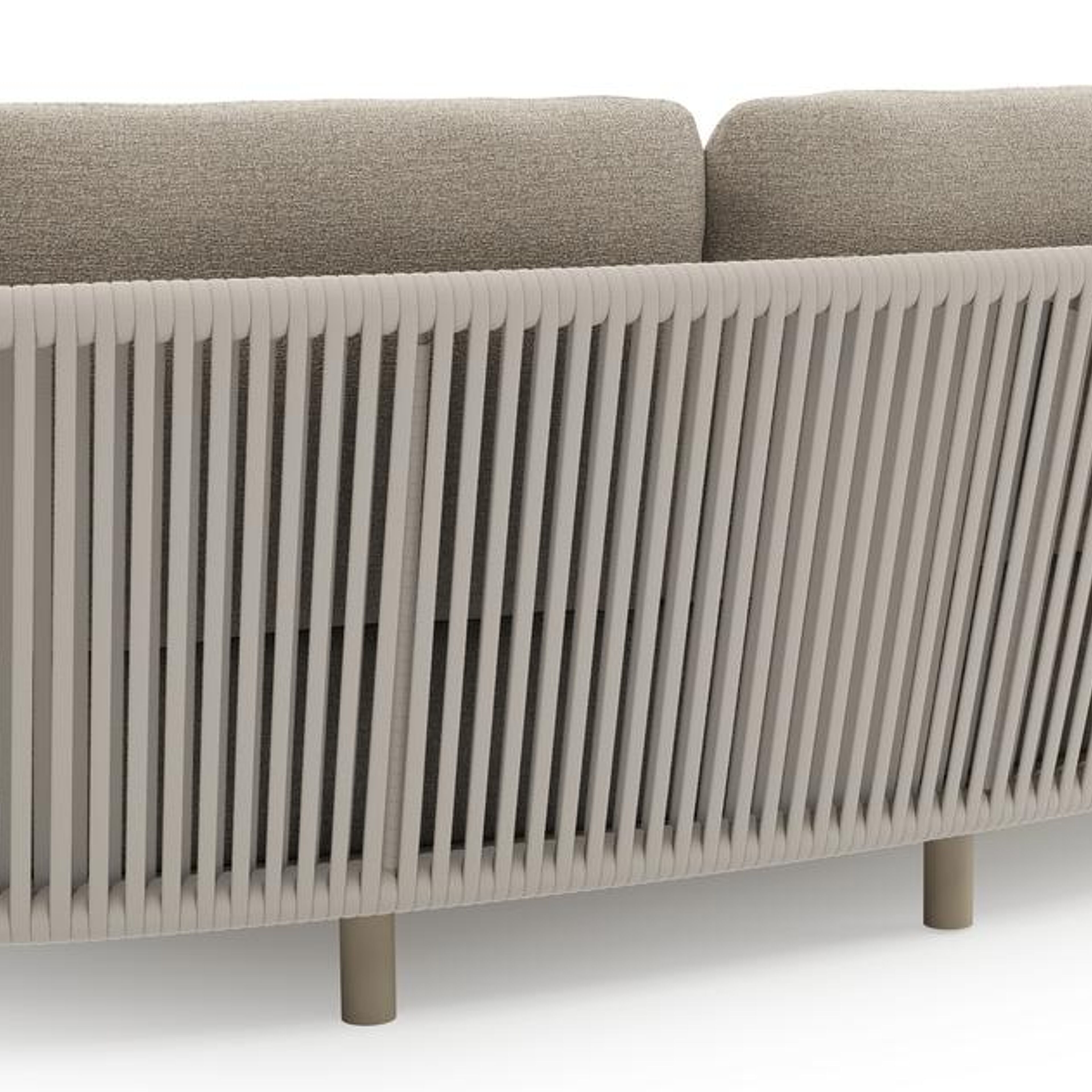 Lupino loungeset in beige aluminium en beige verticaal geweven luxe vlakke brede rope met catania sand all weather cosytica kussen | Exterioo tuinmeubelen