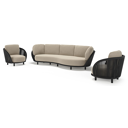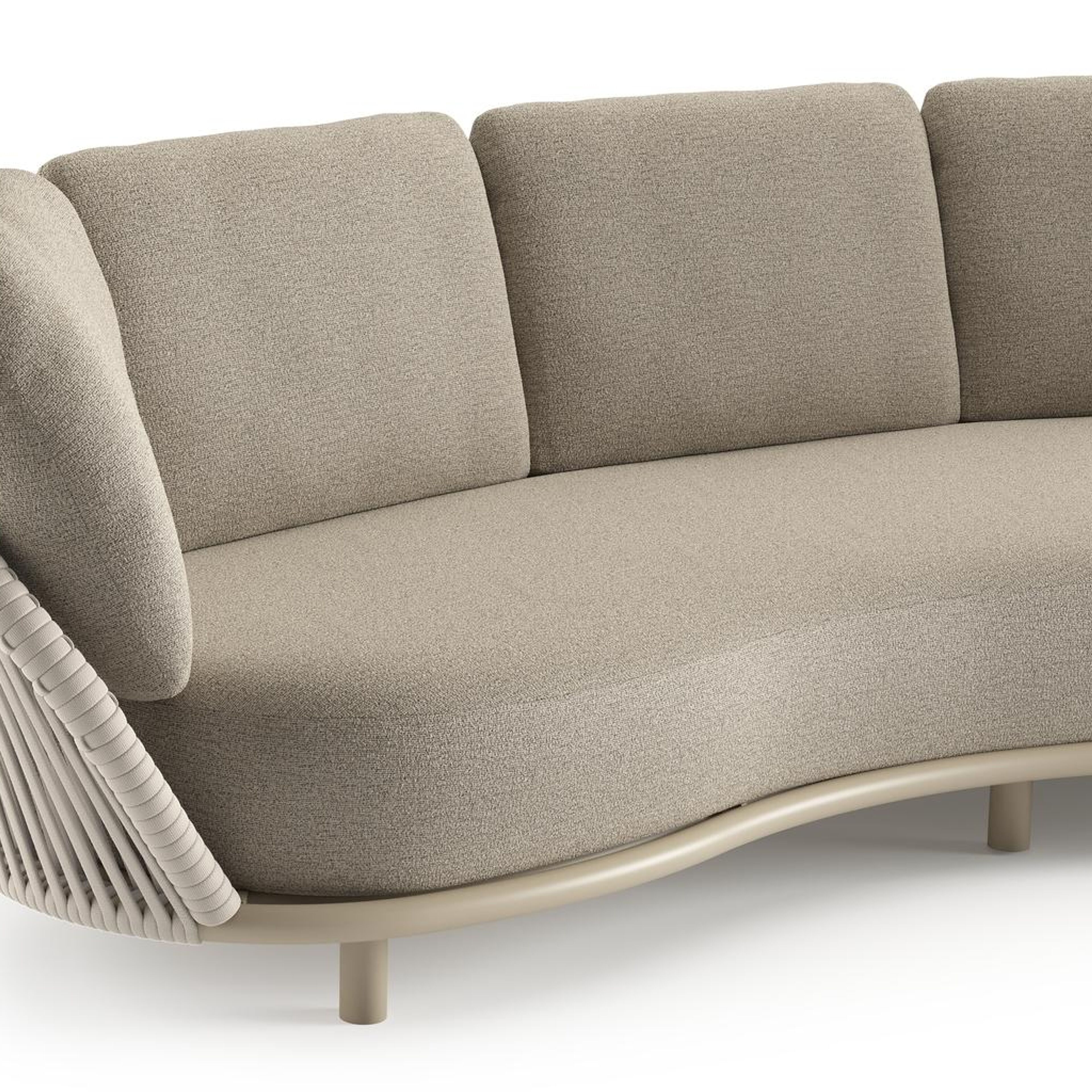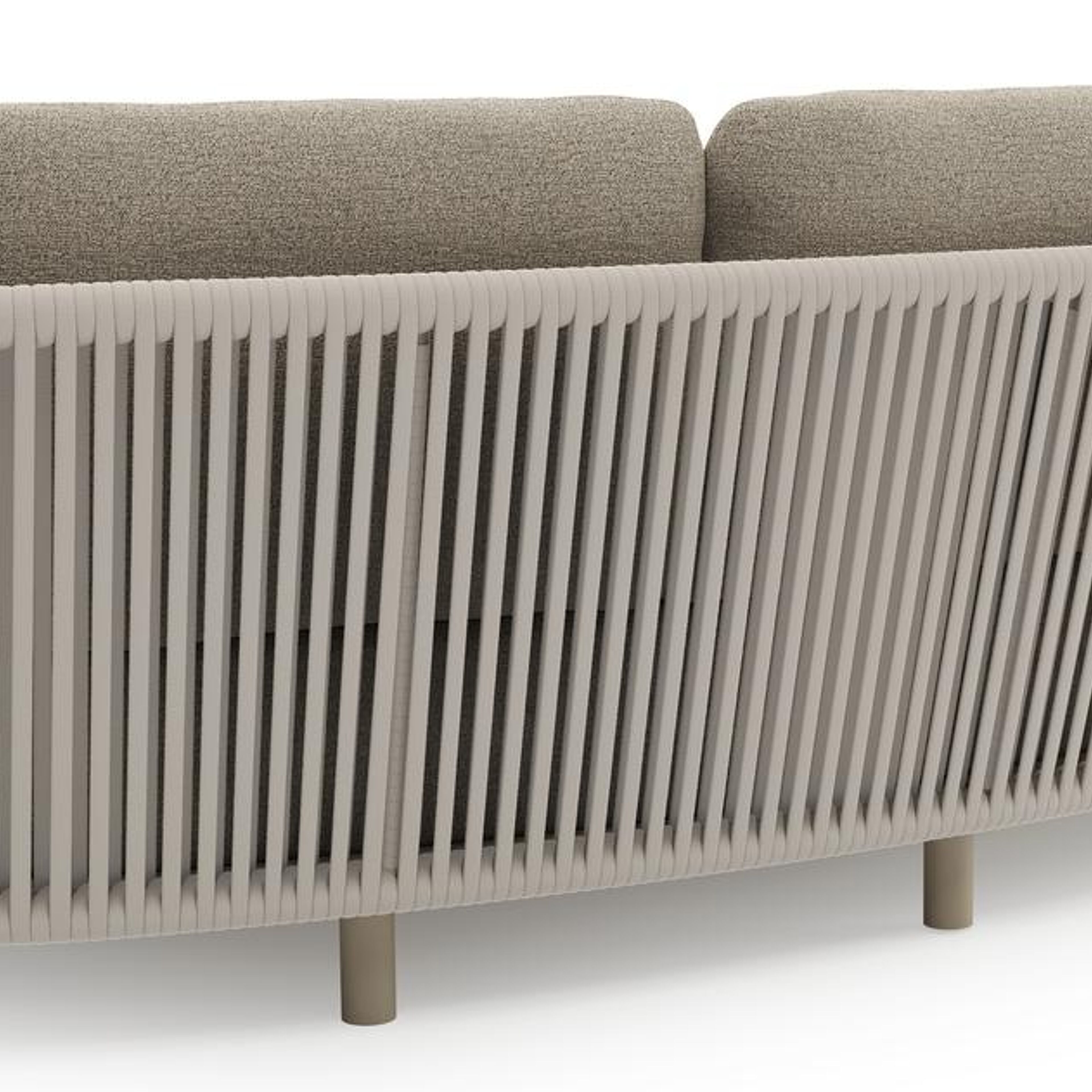 Lupino loungeset in beige aluminium en beige verticaal geweven luxe vlakke brede rope met catania beige all weather cosytica kussen | Exterioo tuinmeubelen