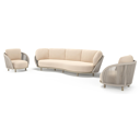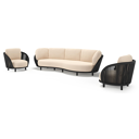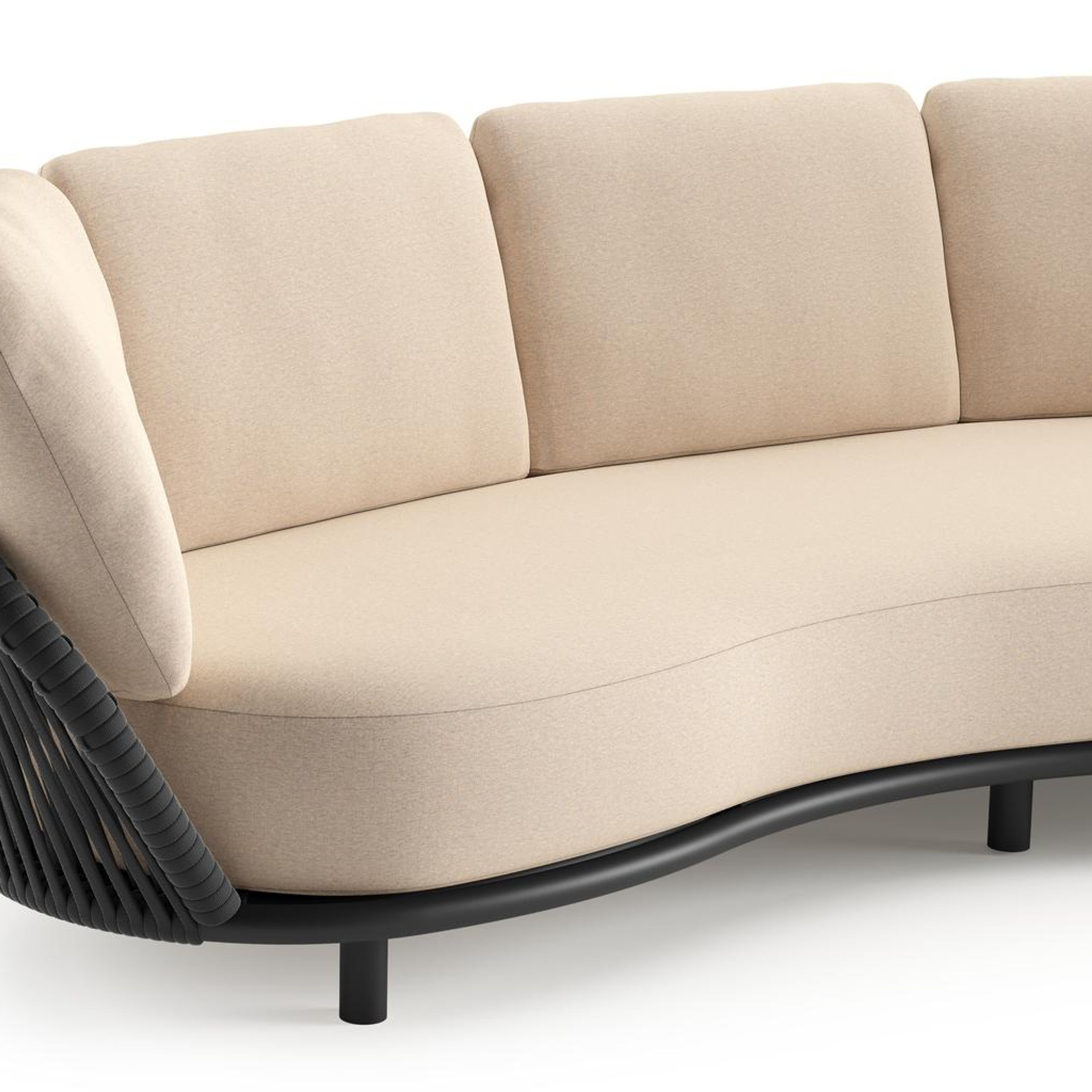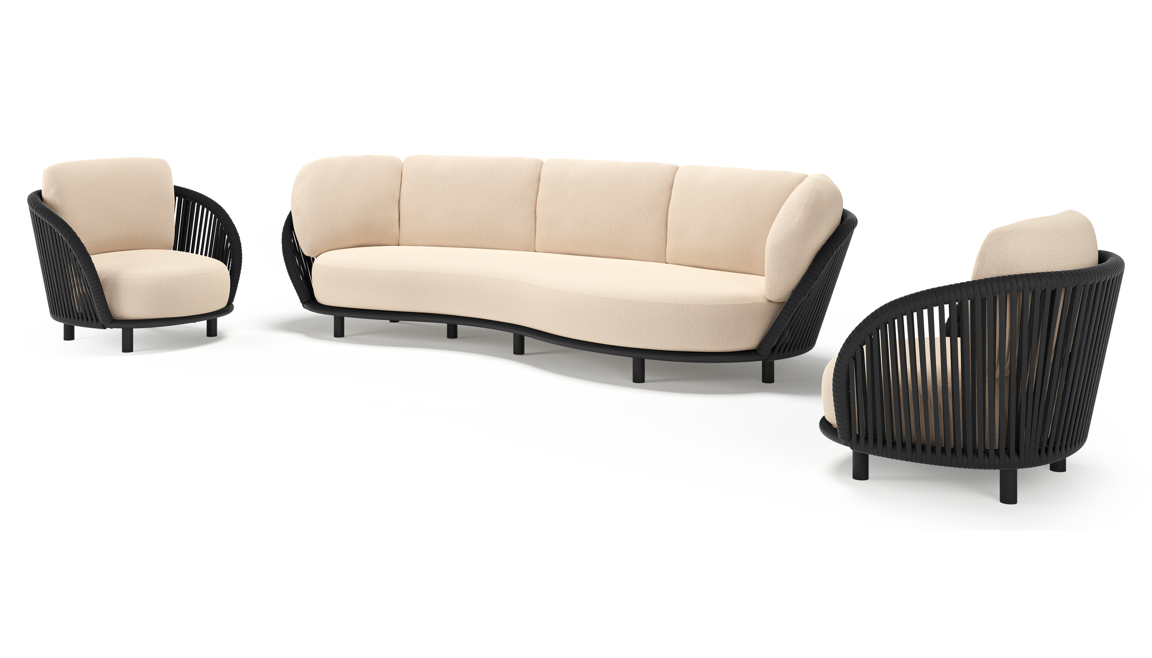 Lupino loungeset in zwart aluminium en zwart verticaal geweven luxe vlakke brede rope met heritage papyrus all weather sunbrella® luxe kussen | Exterioo tuinmeubelen
