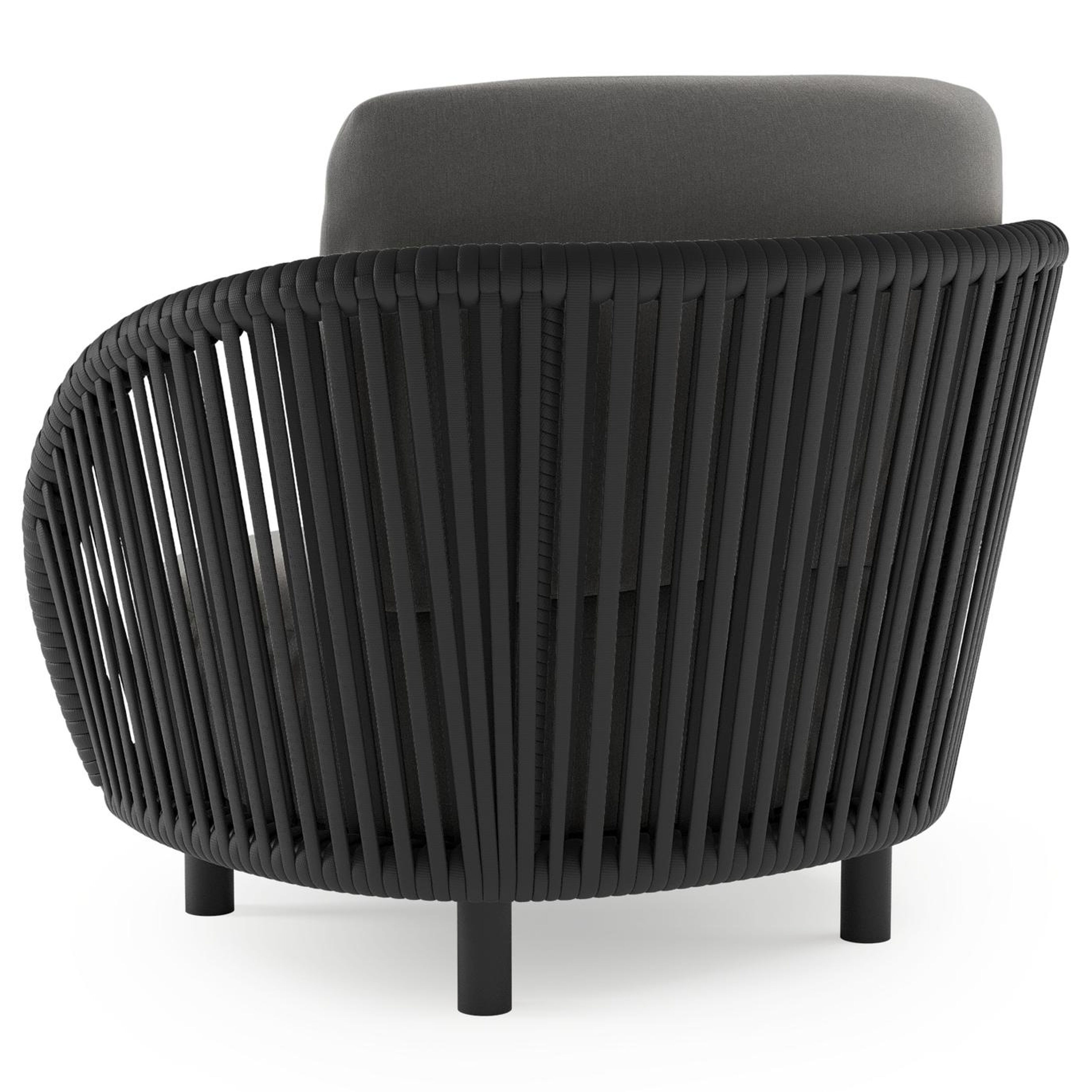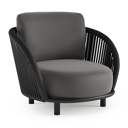 Lupino loungestoel in zwart aluminium en zwart verticaal geweven luxe vlakke brede rope met natte charcoal chine all weather sunbrella® luxe kussen | Exterioo tuinmeubelen
