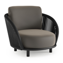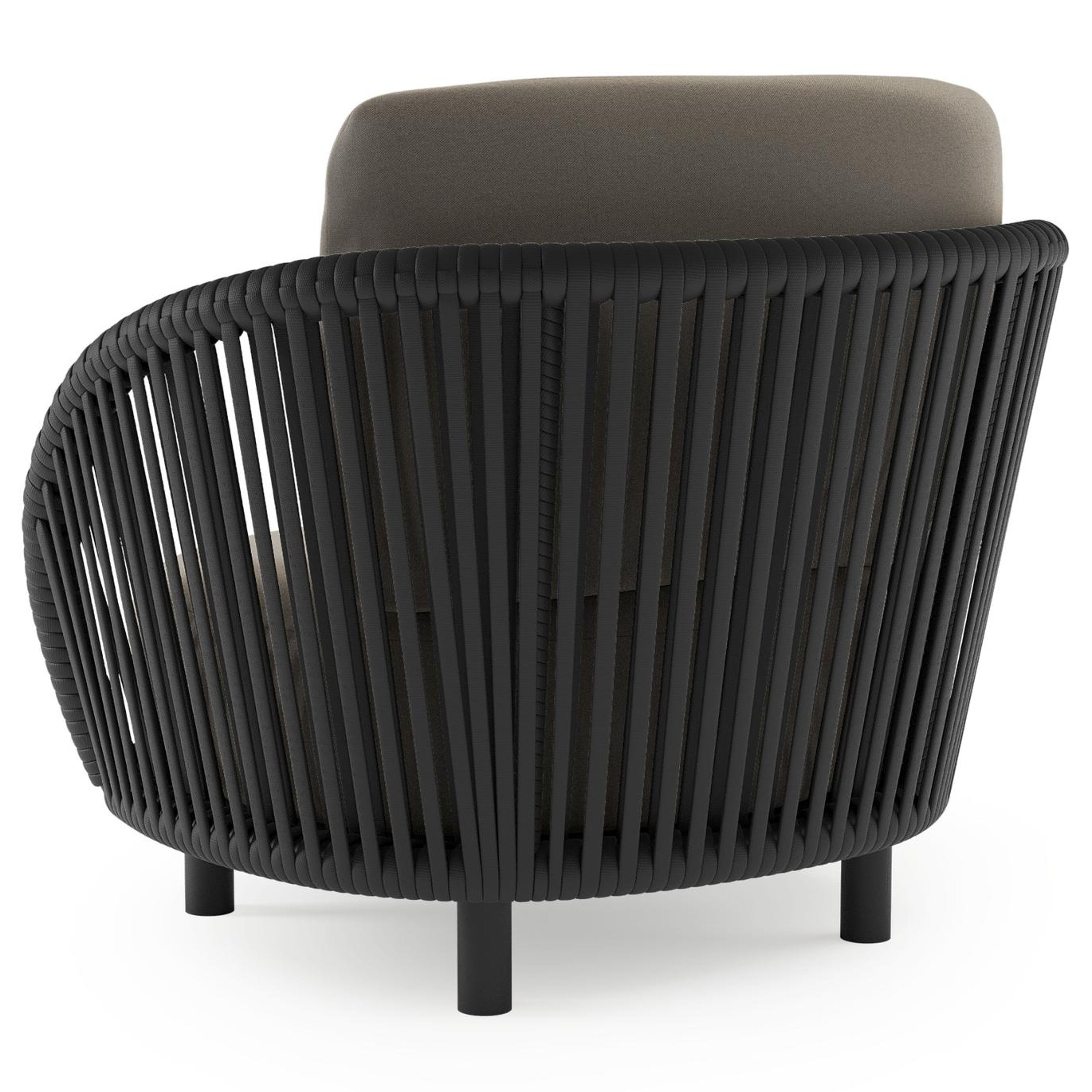 Lupino loungestoel in zwart aluminium en zwart verticaal geweven luxe vlakke brede rope met natte carbon beige all weather sunbrella® luxe kussen | Exterioo tuinmeubelen