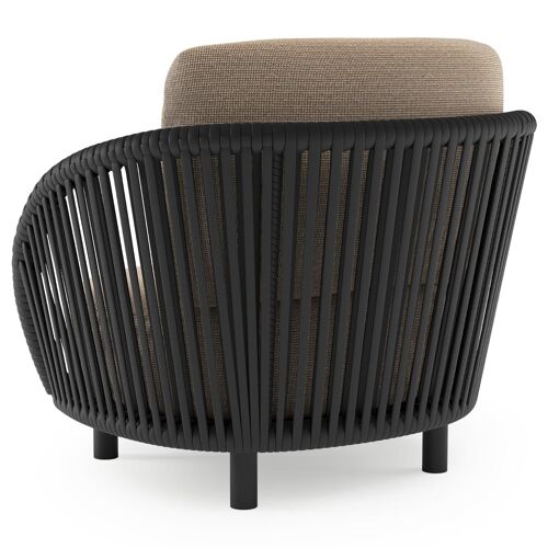 Lupino loungestoel in zwart aluminium en zwart verticaal geweven luxe vlakke brede rope met firenze earth all weather solica kussen | Exterioo
