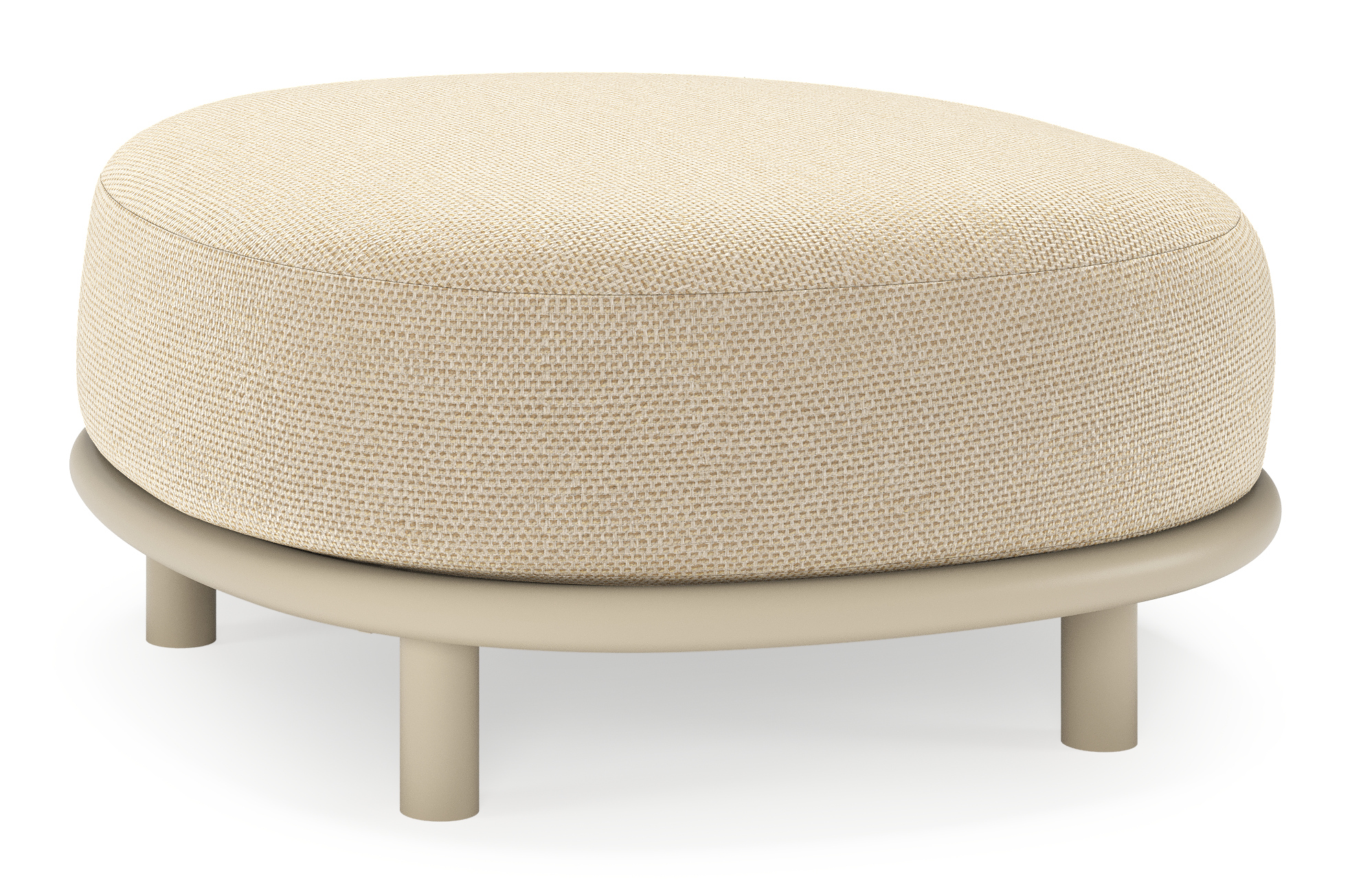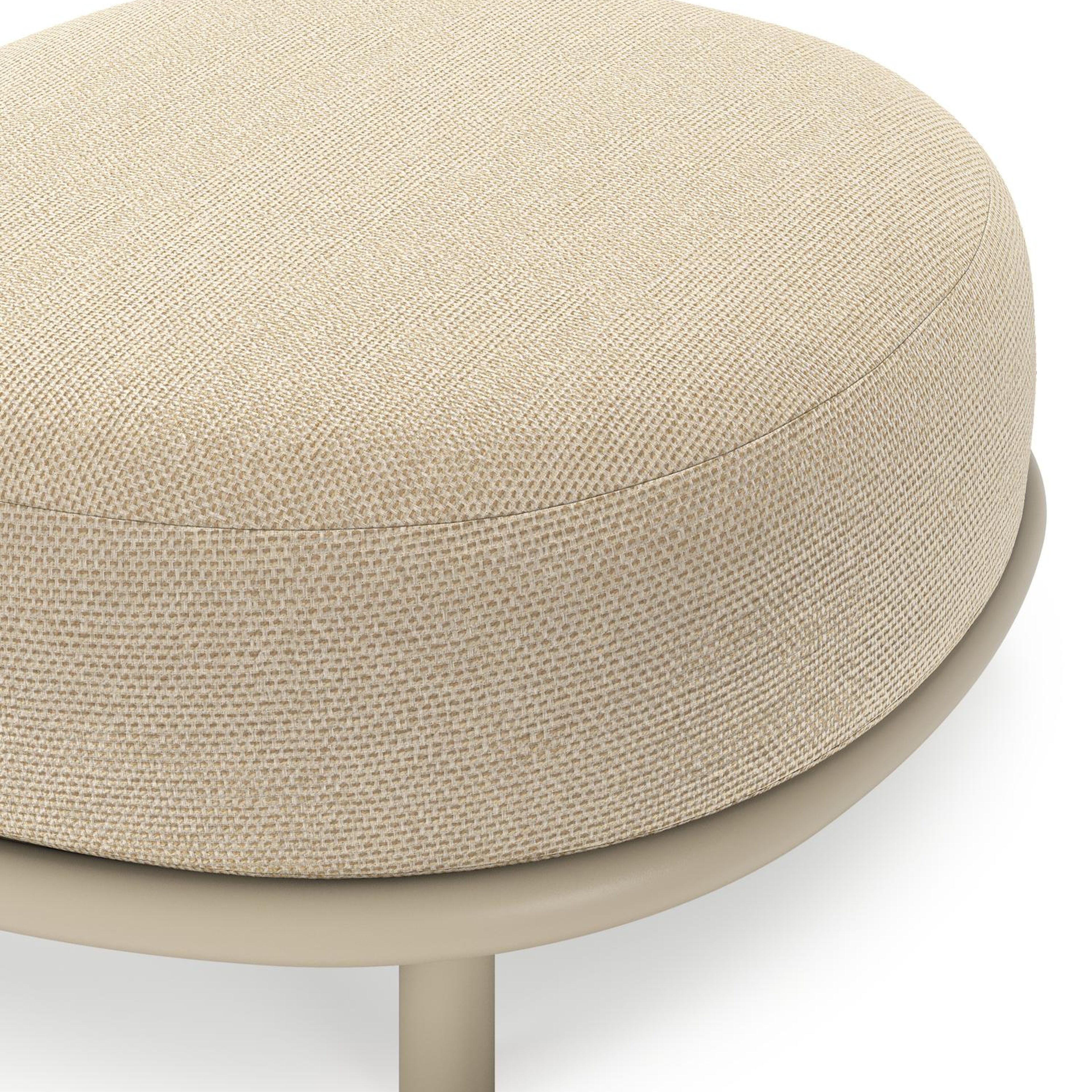 Lupino poef in beige aluminium met althea camel all weather cosytica kussen | Exterioo tuinmeubelen