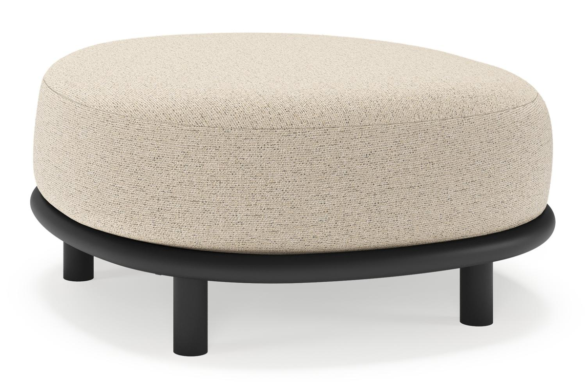 Lupino poef in zwart aluminium met marbella beige all weather cosytica kussen | Exterioo