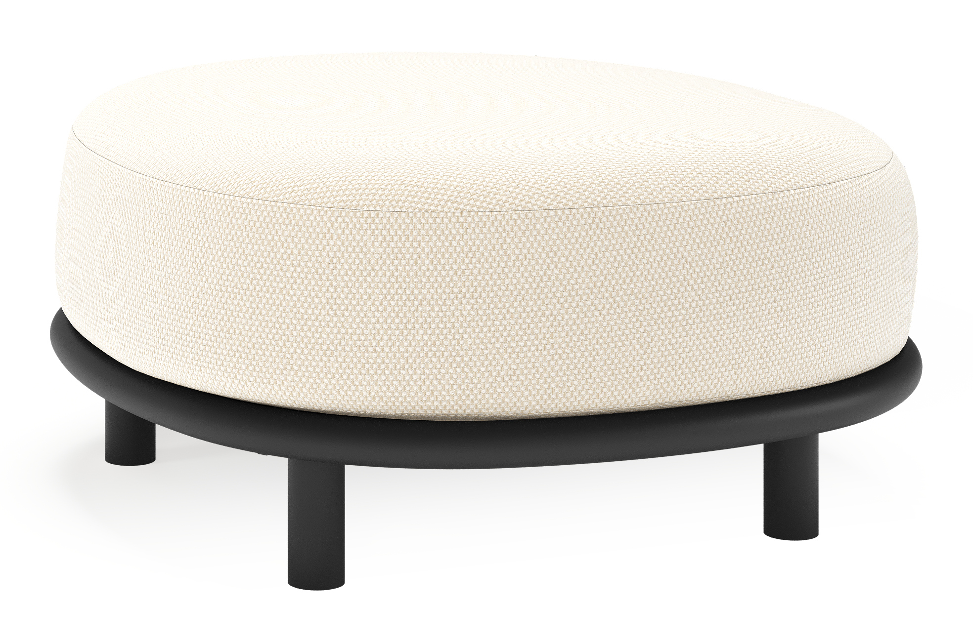 Lupino poef in zwart aluminium met althea off white all weather cosytica kussen | Exterioo tuinmeubelen