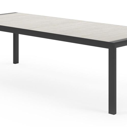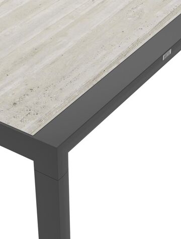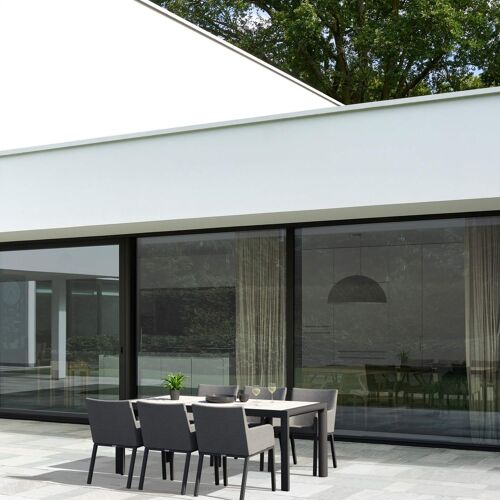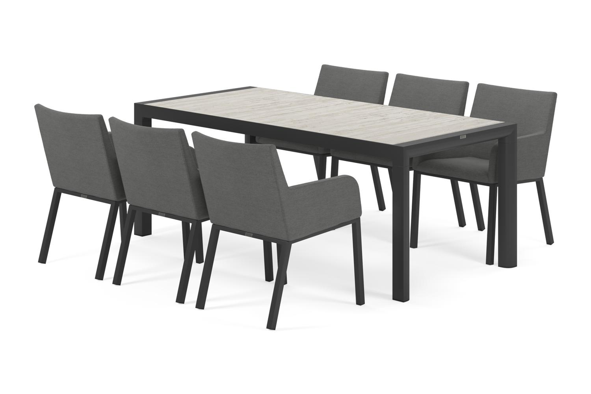 Madura tuinset in zwart aluminium en travertin keramische tegels tafelblad met 6 Rivo tuinstoelen | Exterioo