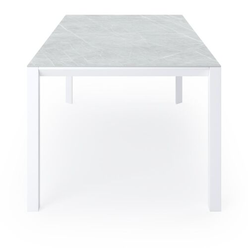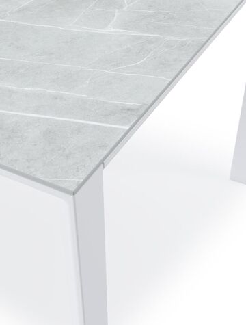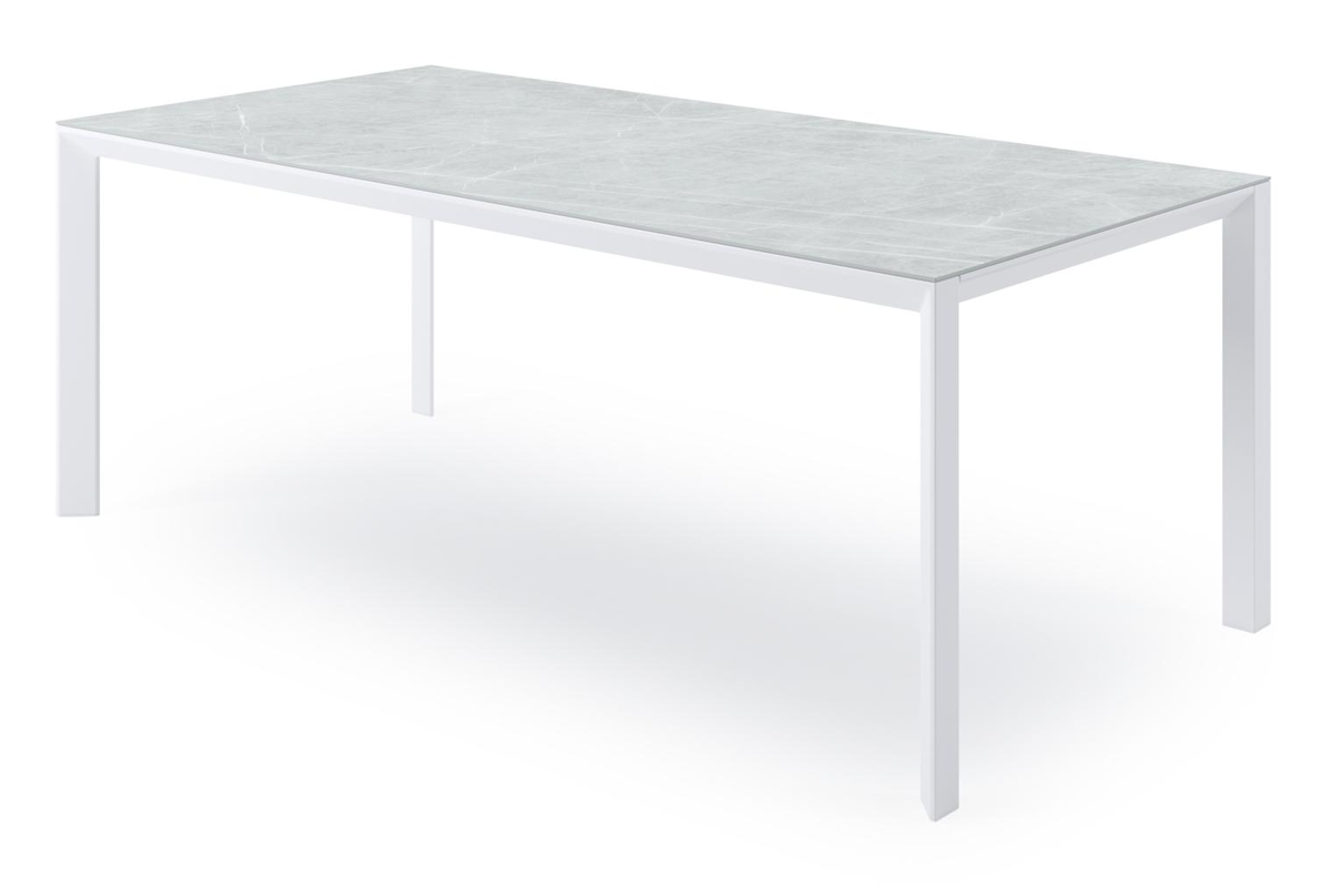 De Malito tafel is kenmerkend voor zijn elegant, schuin aflopende rand. Het frame is gemaakt van aluminium een licht, maar sterk en roestvrij materiaal dat zeer geschikt is voor tuinmeubelen. Deze tafel is afgewerkt met een Zaha Stone tafelblad. Een tafelblad met een industrieelgrijze kleurschakeringen en afgewerkt met door elkaar lopende krijtlijnen. Het voordeel van volkeramische tafelbladen is dat ze krasbestendig zijn en bestand zijn tegen alle weersomstandigheden.