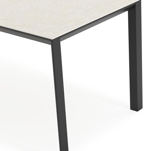 Het frame van de tafel is gemaakt uit roestvrij aluminium, een sterk, maar toch licht materiaal dat makkelijk verplaatsbaar is. Het oppervlak is glad afgewerkt waardoor het geen vuil aantrekt en onderhoudsvriendelijk is. De poedercoating zorgt voor de UV- en weerbestendigheid van je meubel.