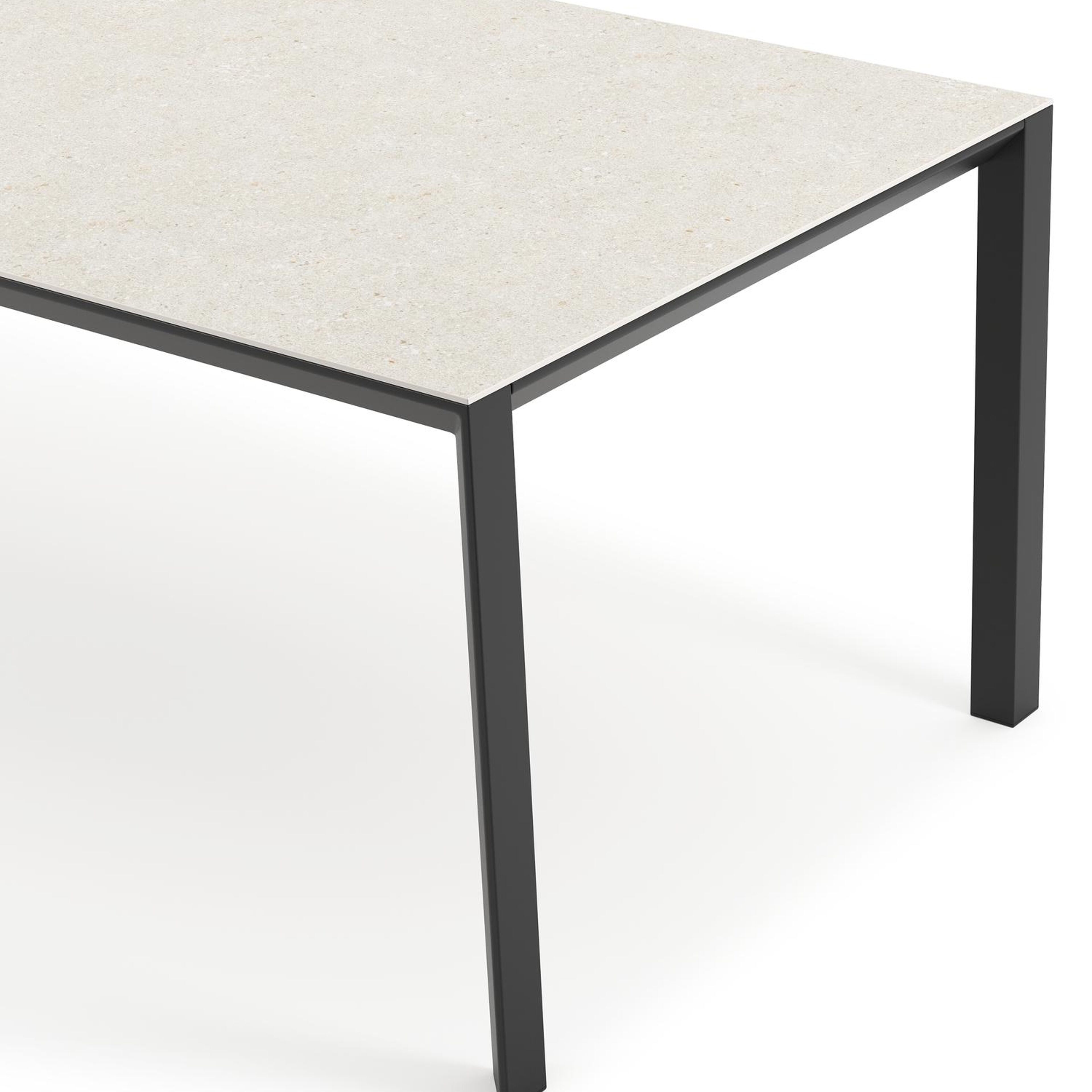 Het frame van de tafel is gemaakt uit roestvrij aluminium, een sterk, maar toch licht materiaal dat makkelijk verplaatsbaar is. Het oppervlak is glad afgewerkt waardoor het geen vuil aantrekt en onderhoudsvriendelijk is. De poedercoating zorgt voor de UV- en weerbestendigheid van je meubel.
